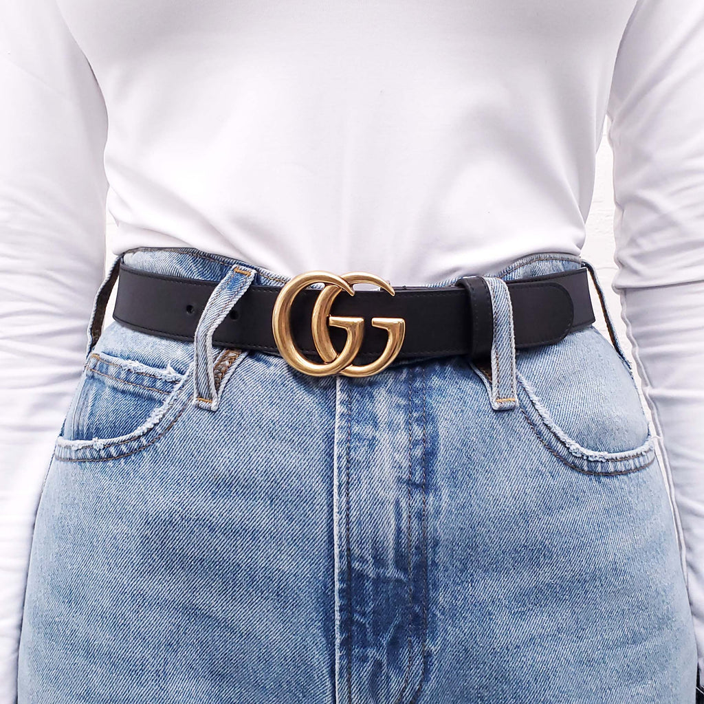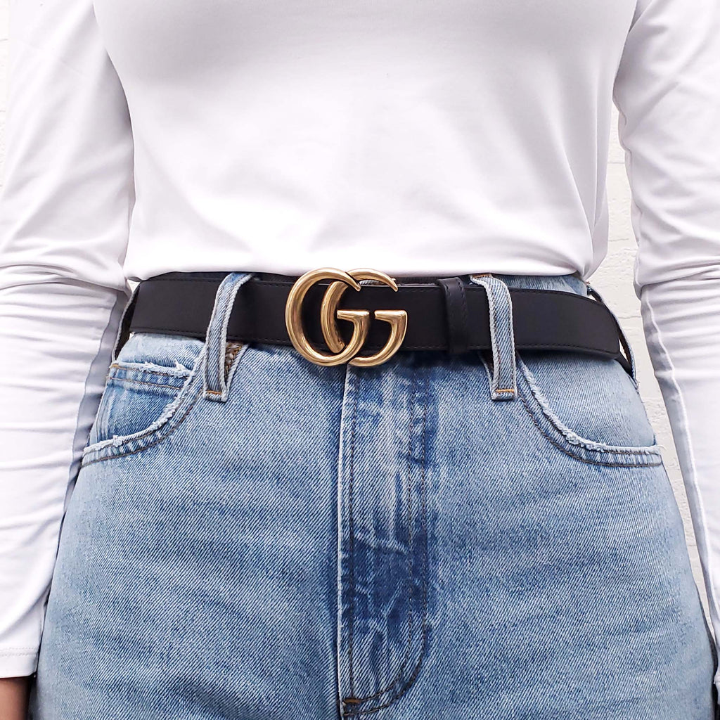 GUCCI BLACK LEATHER 'MARMONT' BELT - SIZE 75