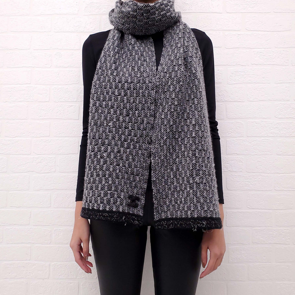 CHANEL BLACK AND GREY KNIT TWEED SCARF