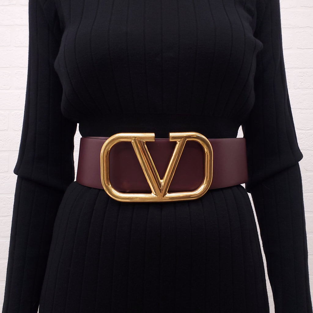 VALENTINO BURGUNDY AND RED WIDE LEATHER LOGO BELT - SIZE 75