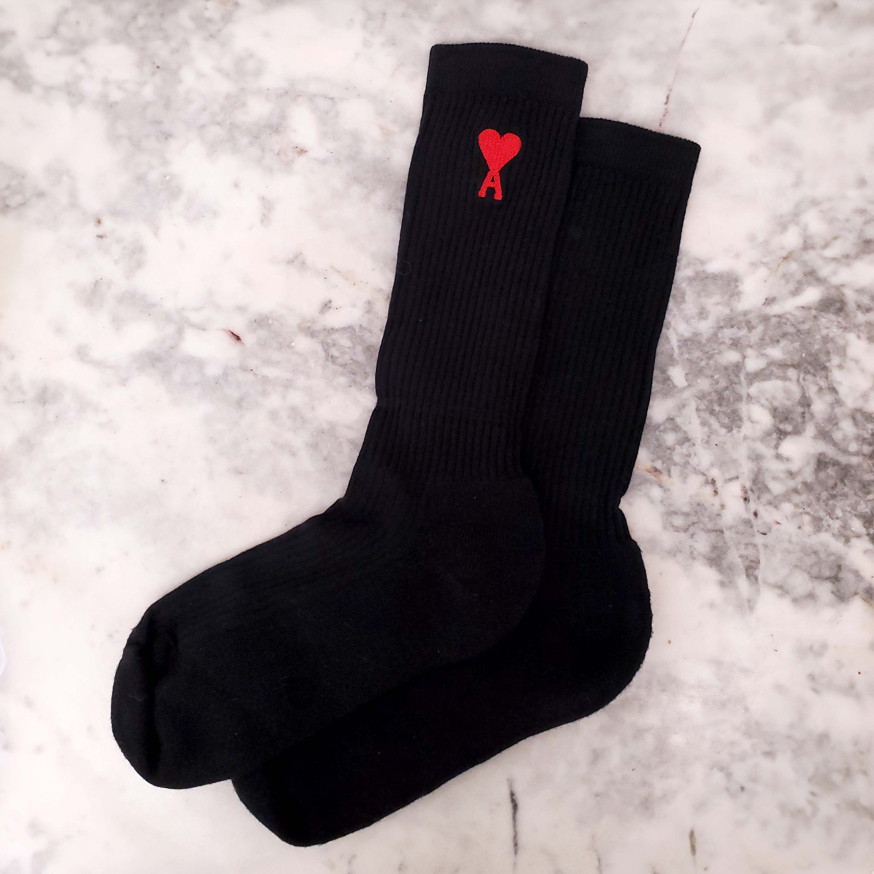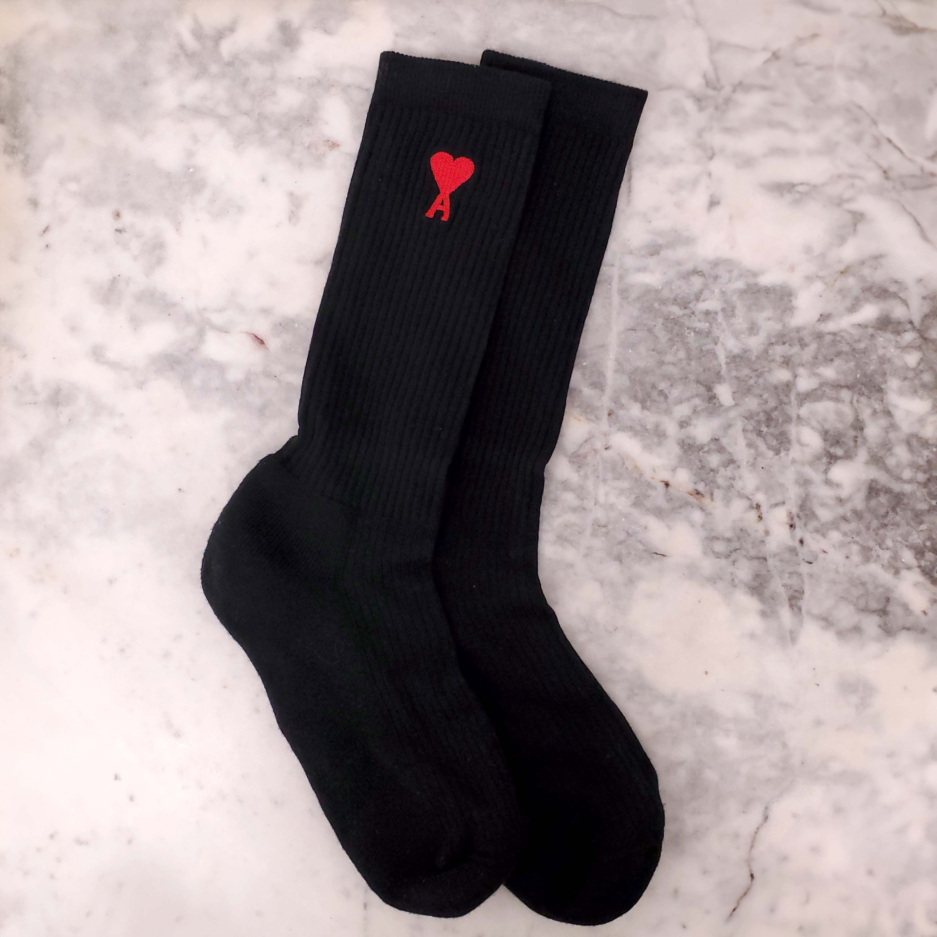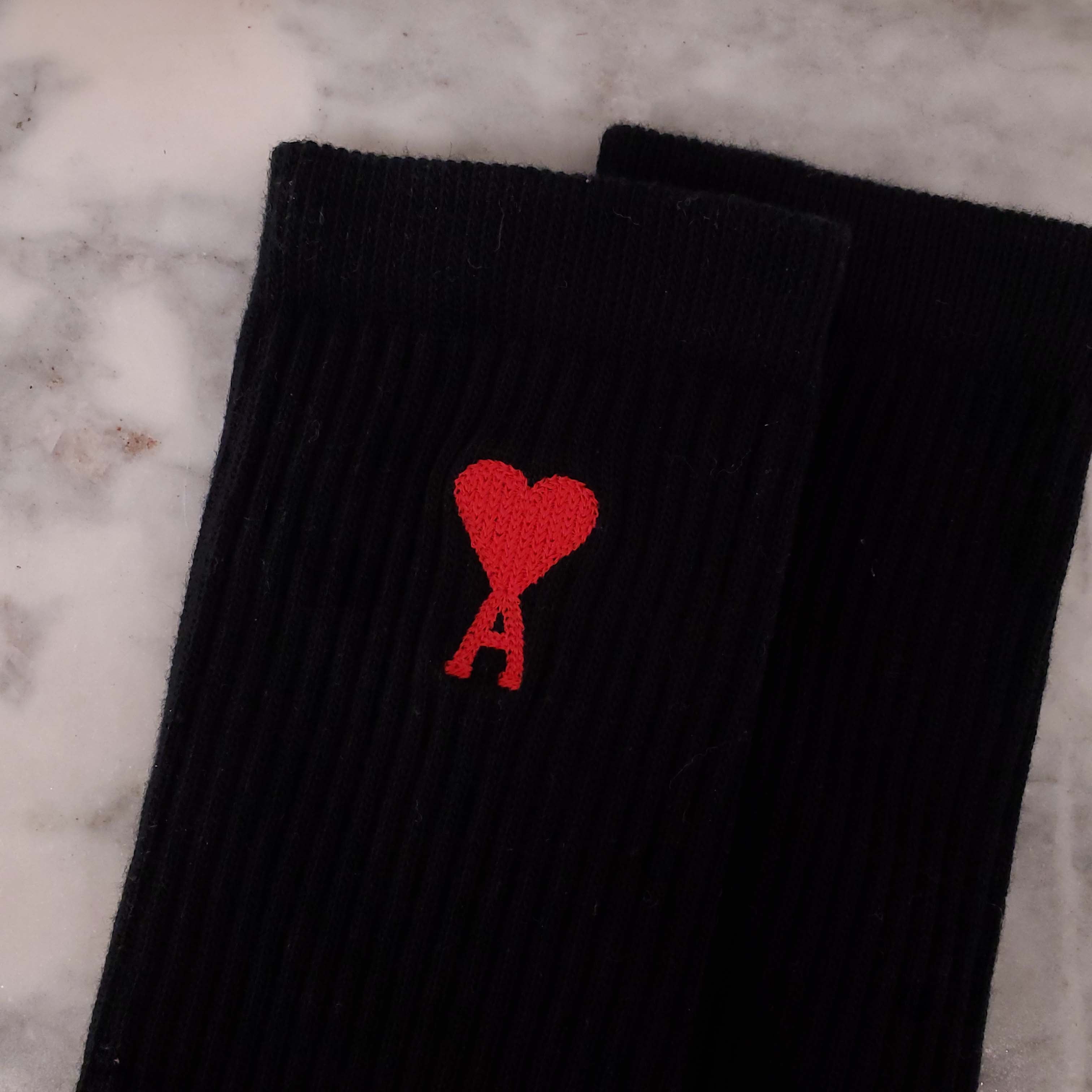 AMI PARIS BLACK SOCKS WITH RED LOGO