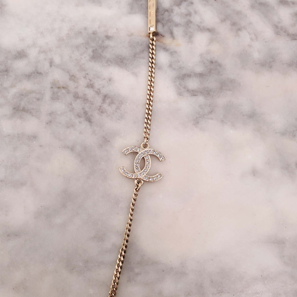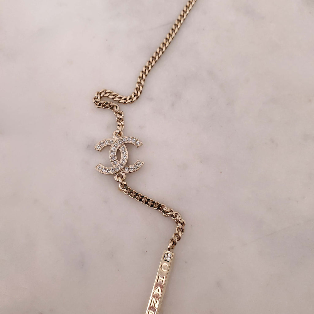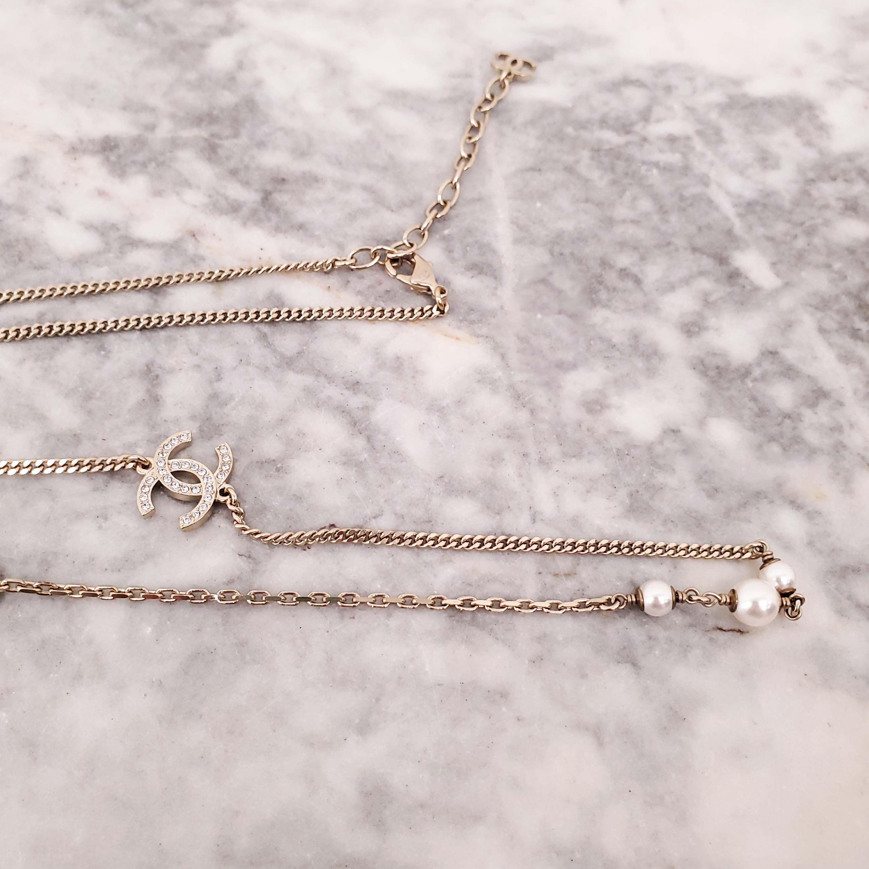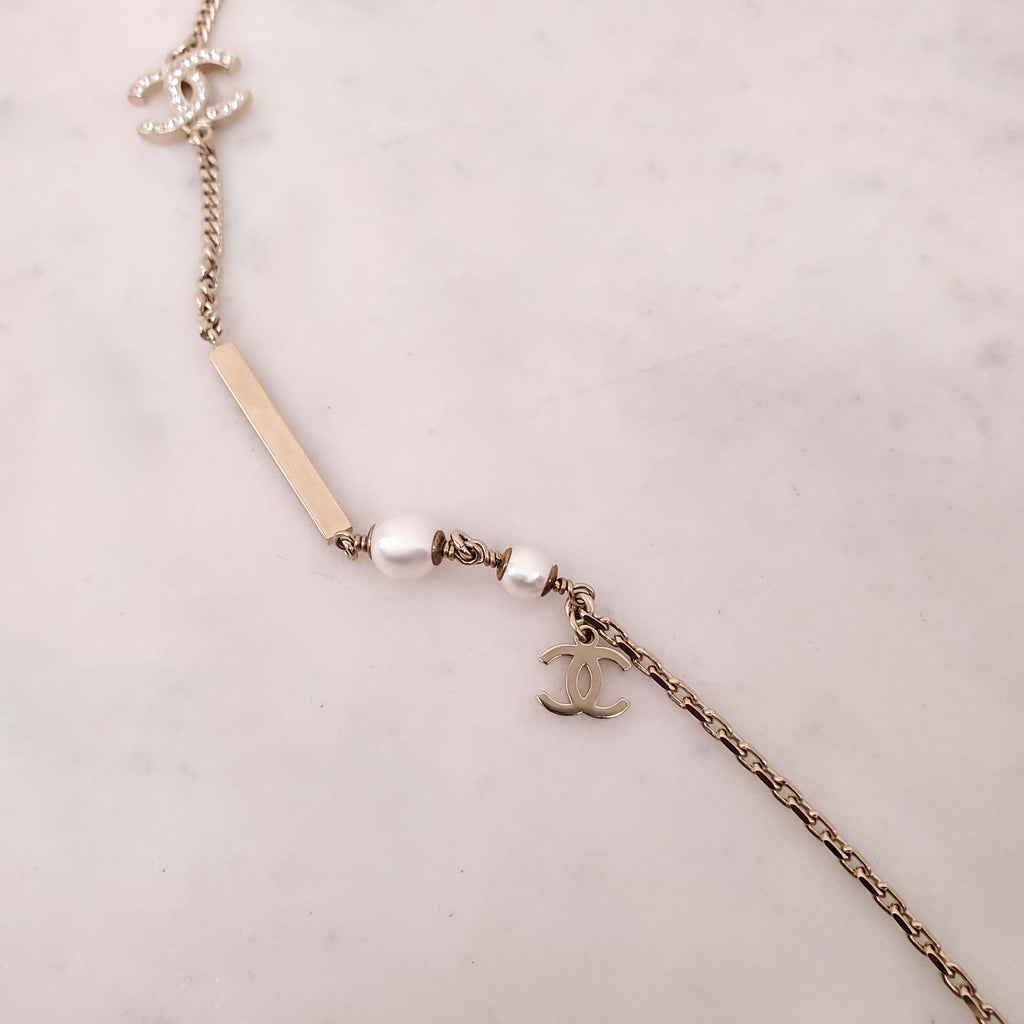 CHANEL MULTI-STRAND PEARL AND CHAIN LOGO NECKLACE