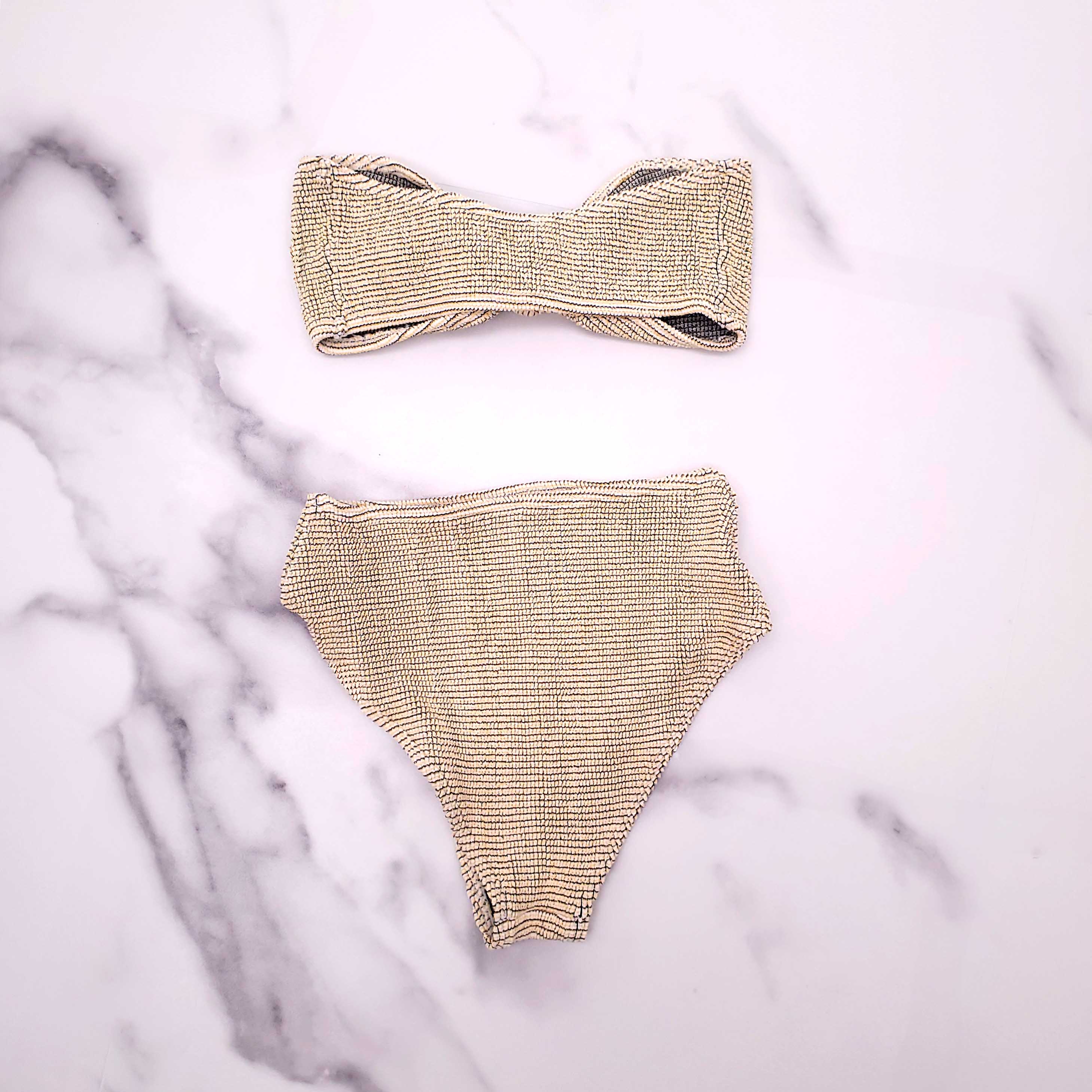 HUNZA G BLACK AND YELLOW BIKINI - ONE SIZE