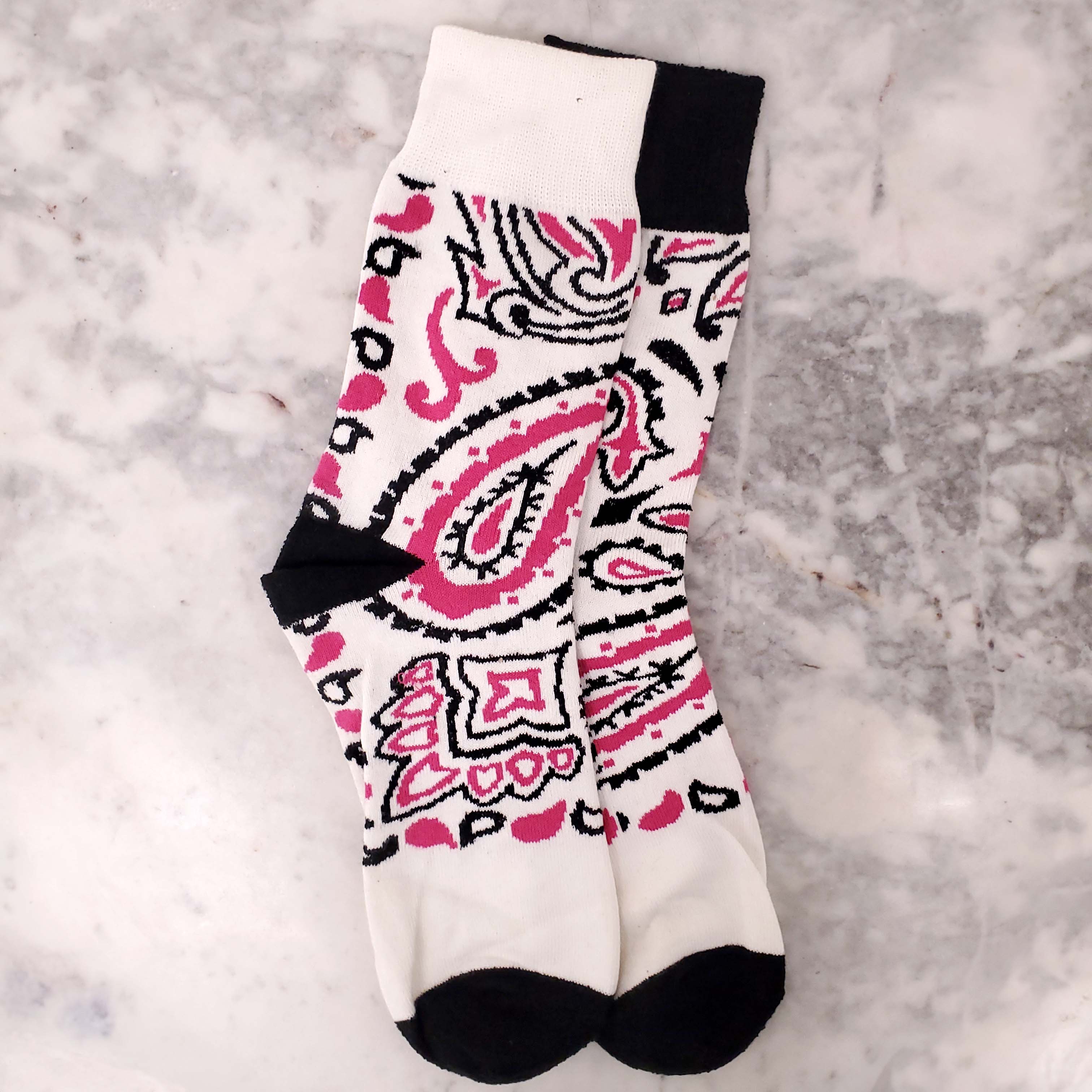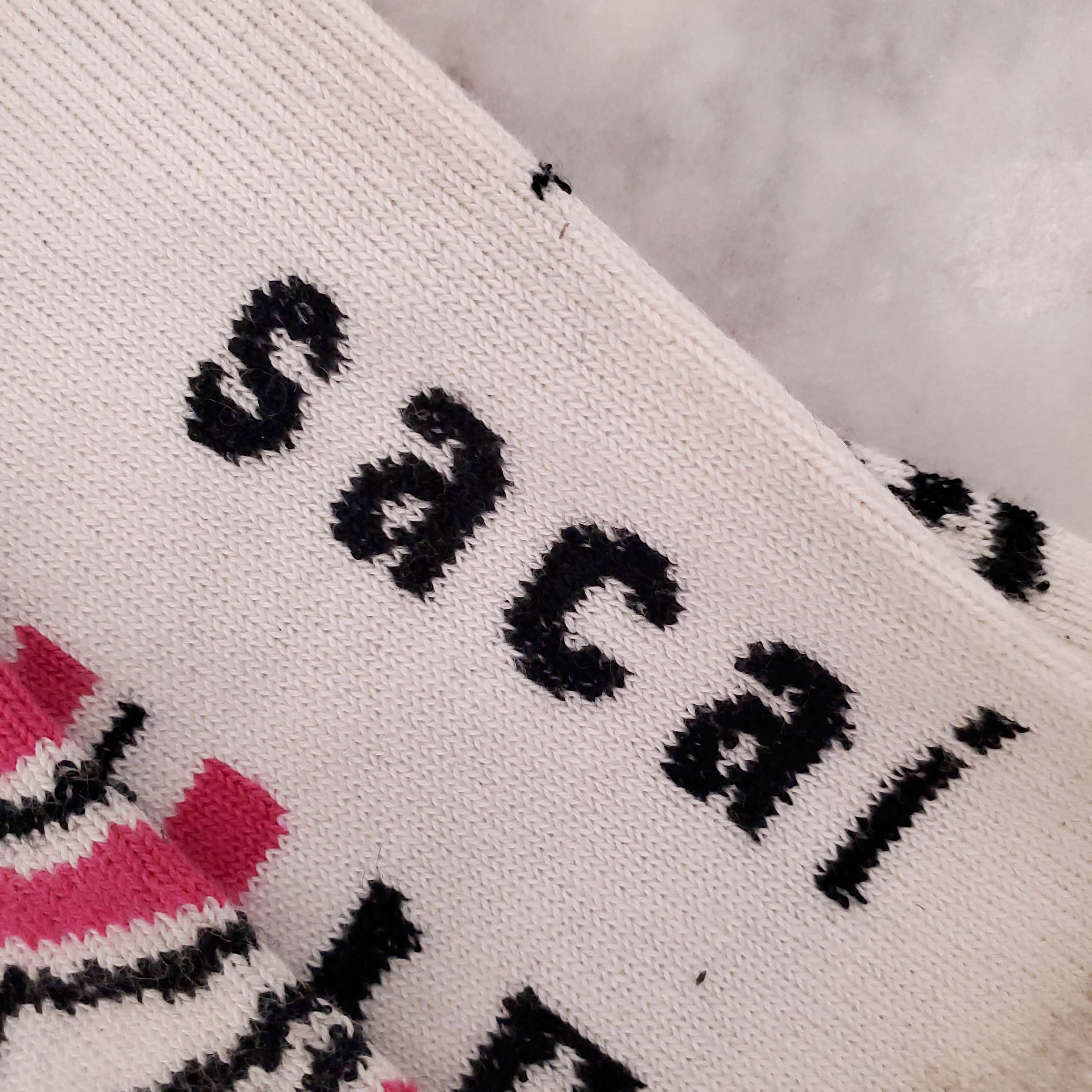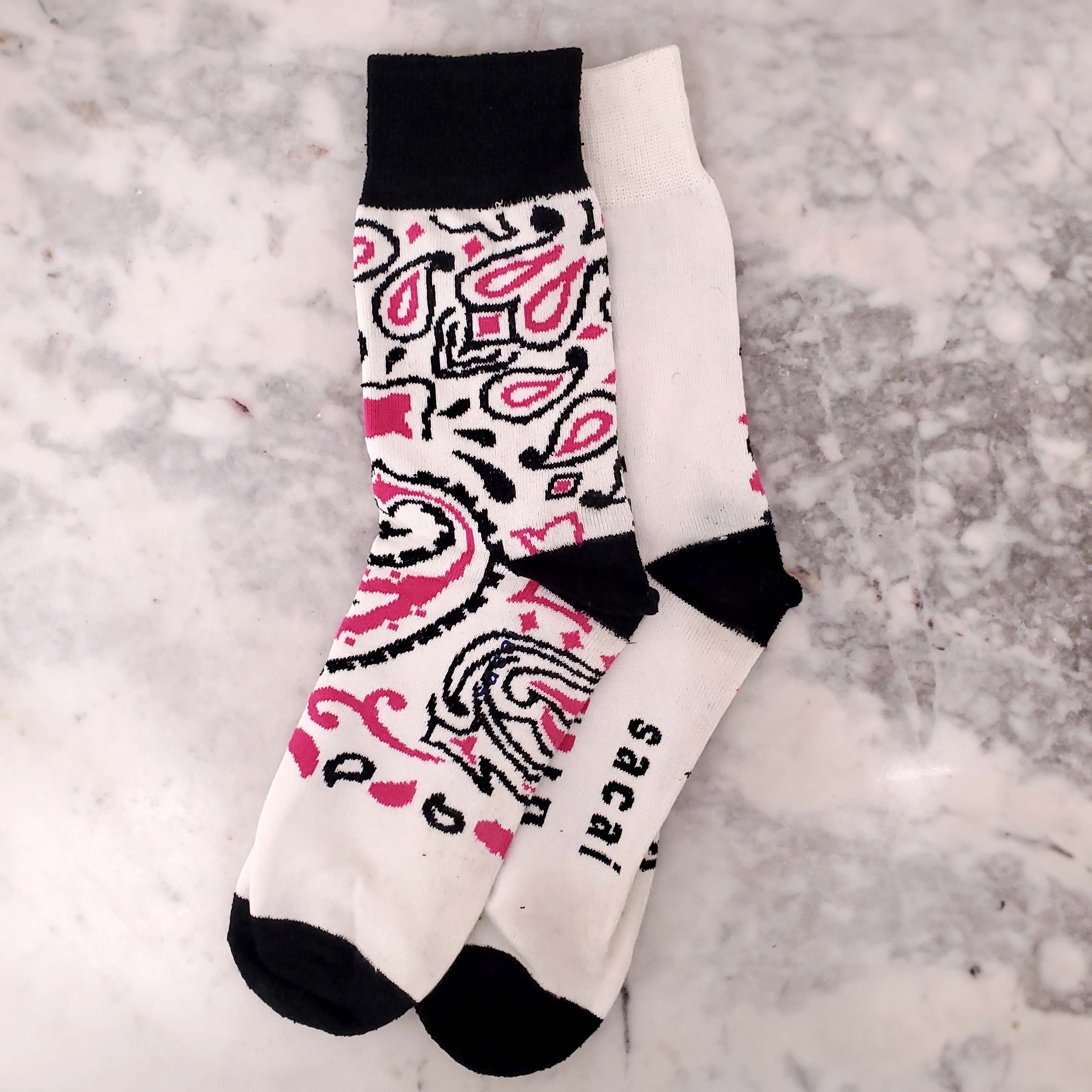 SACAI WHITE, BLACK, AND PINK SOCKS - SIZE L