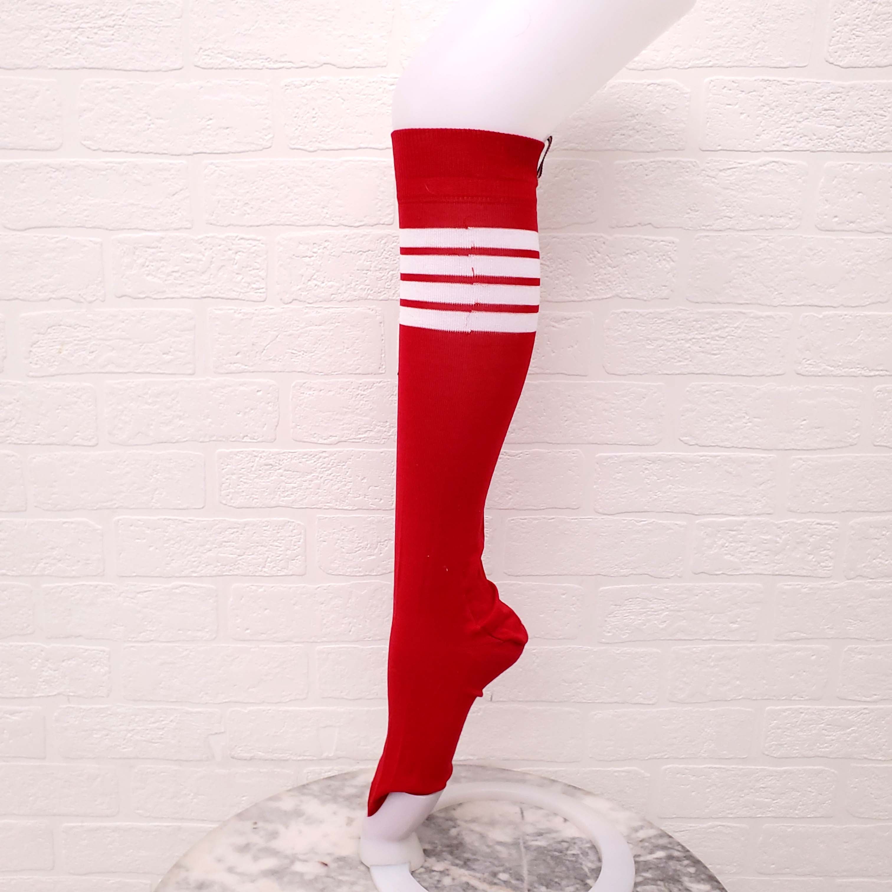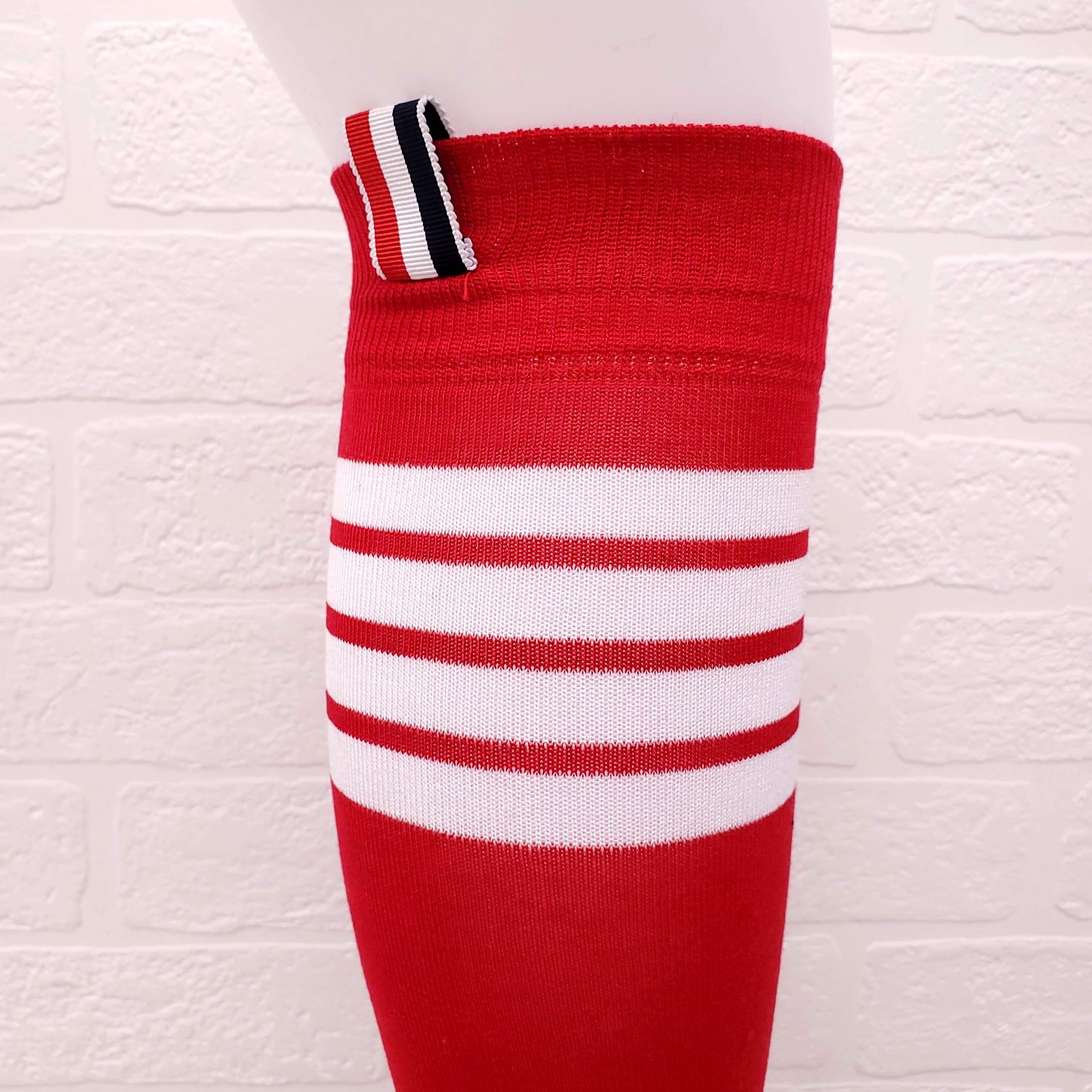 THOM BROWNE RED SOCKS WITH WHITE STRIPED DETAIL
