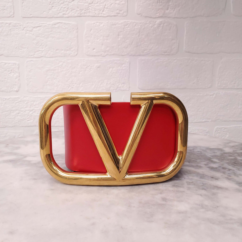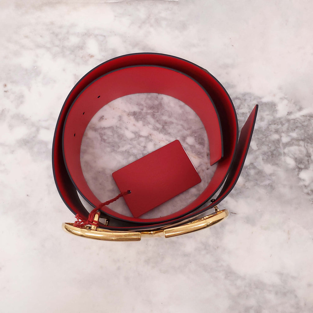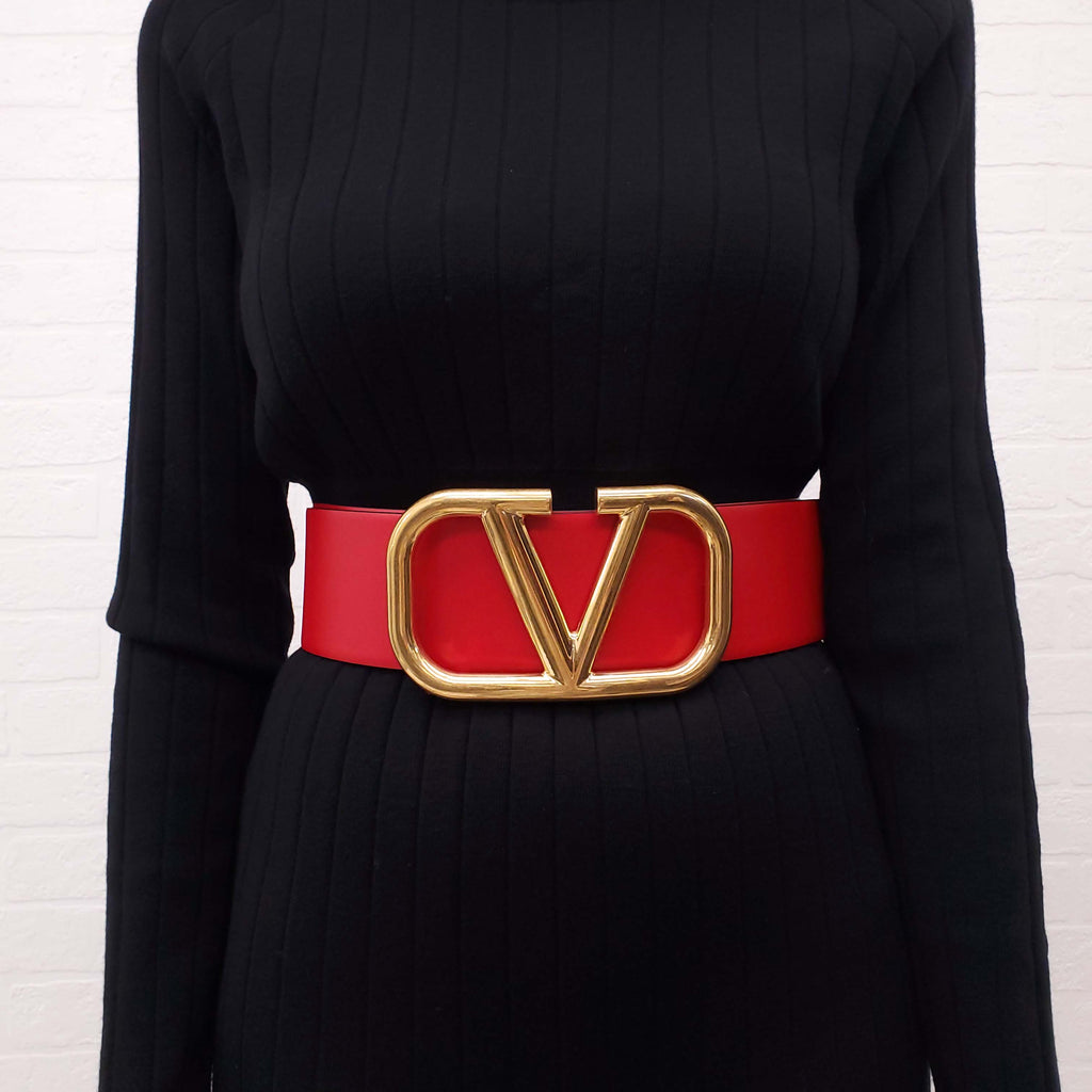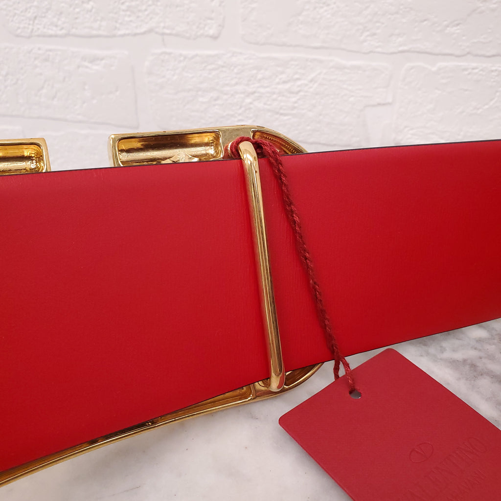 VALENTINO BURGUNDY AND RED WIDE LEATHER LOGO BELT - SIZE 75