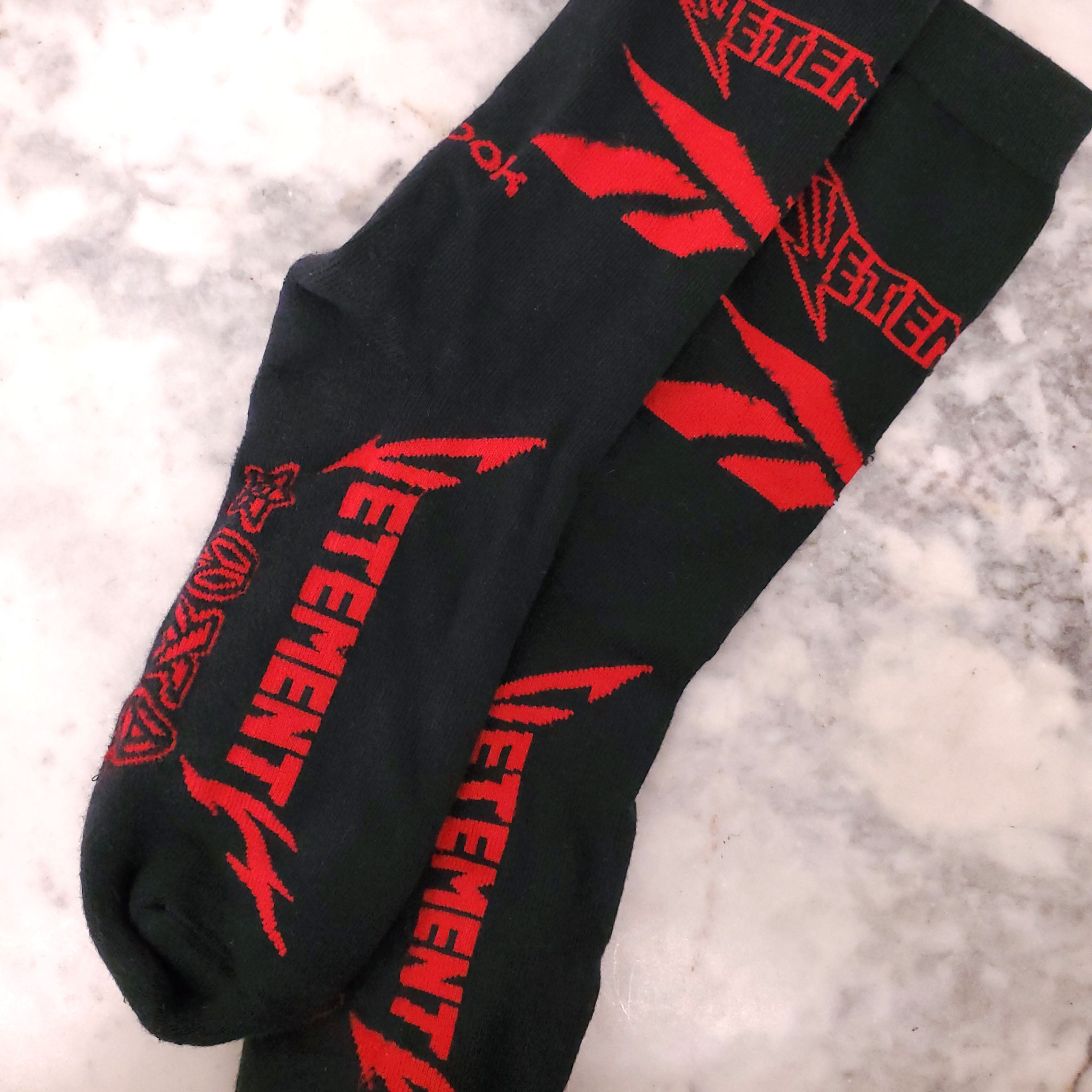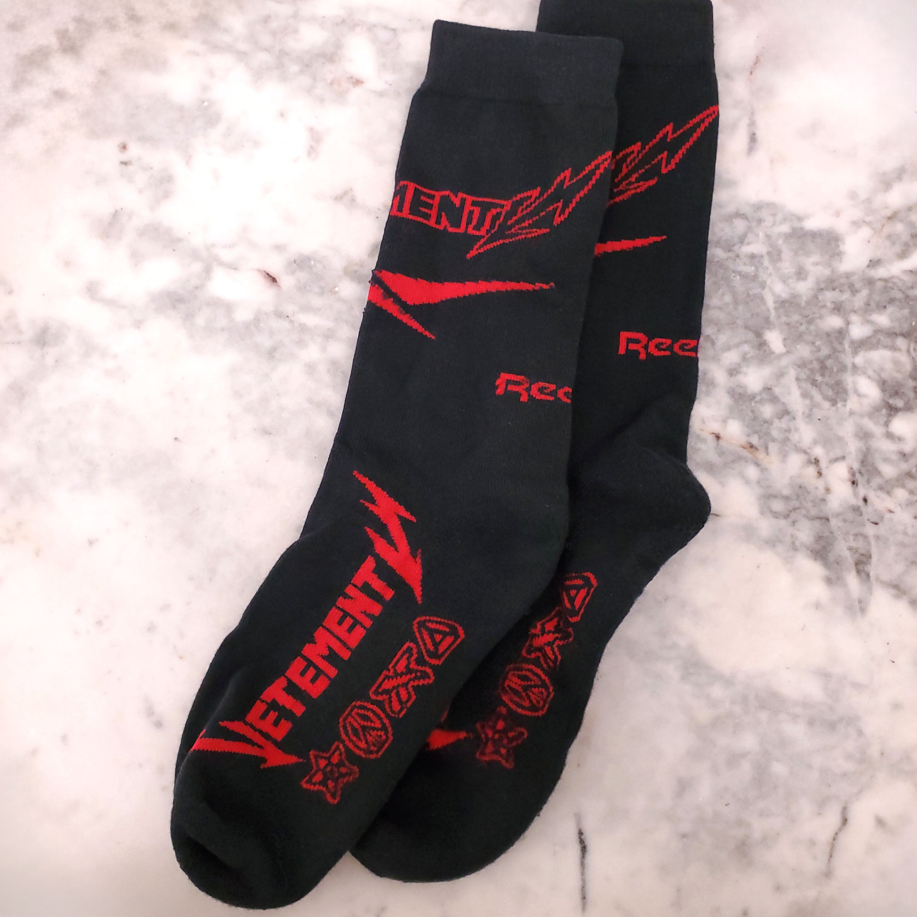 VETEMENTS X REEBOK BLACK SOCKS WITH RED LOGO
