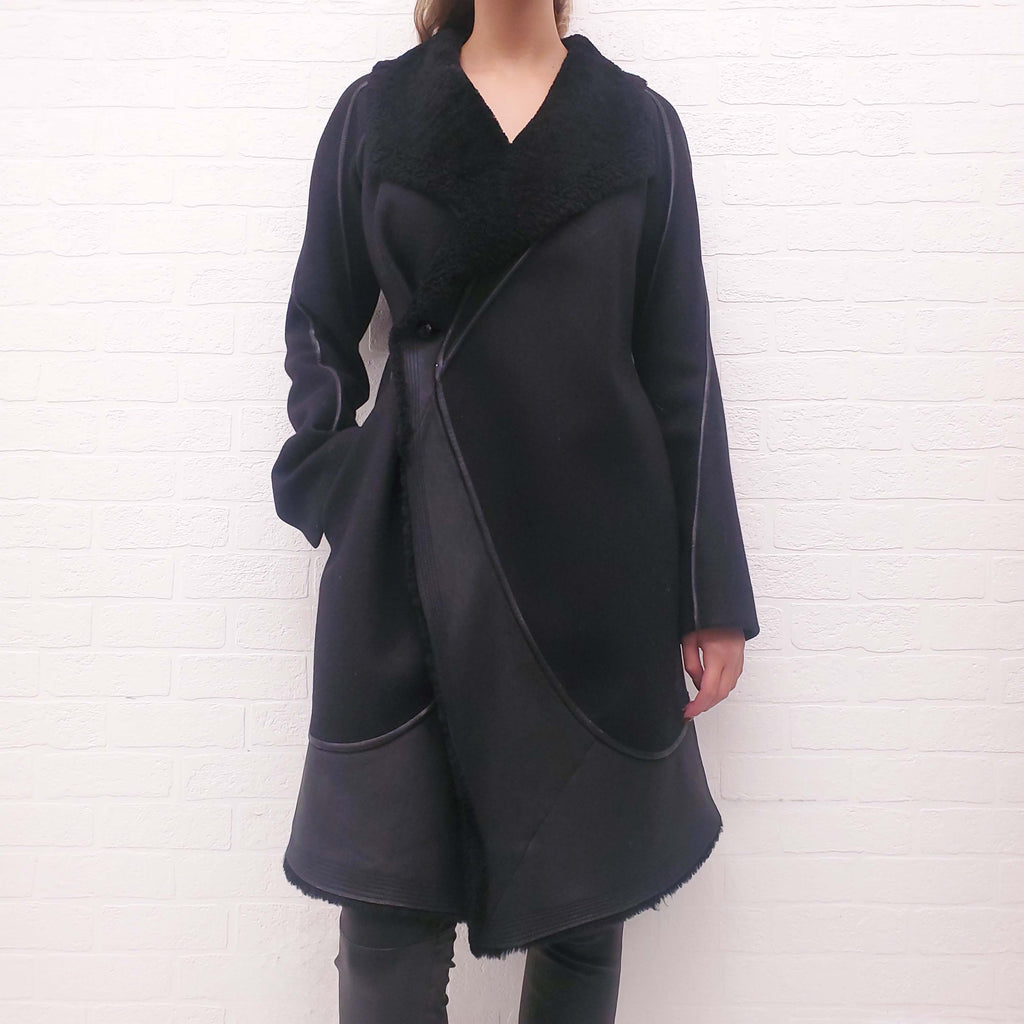 RICK OWENS BLACK FLARE COAT - SIZE 6