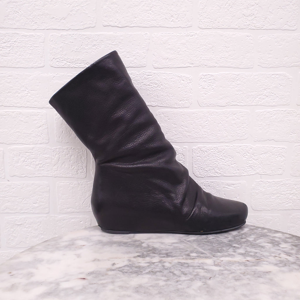 RICK OWENS BLACK LEATHER BOOTS - SIZE 37