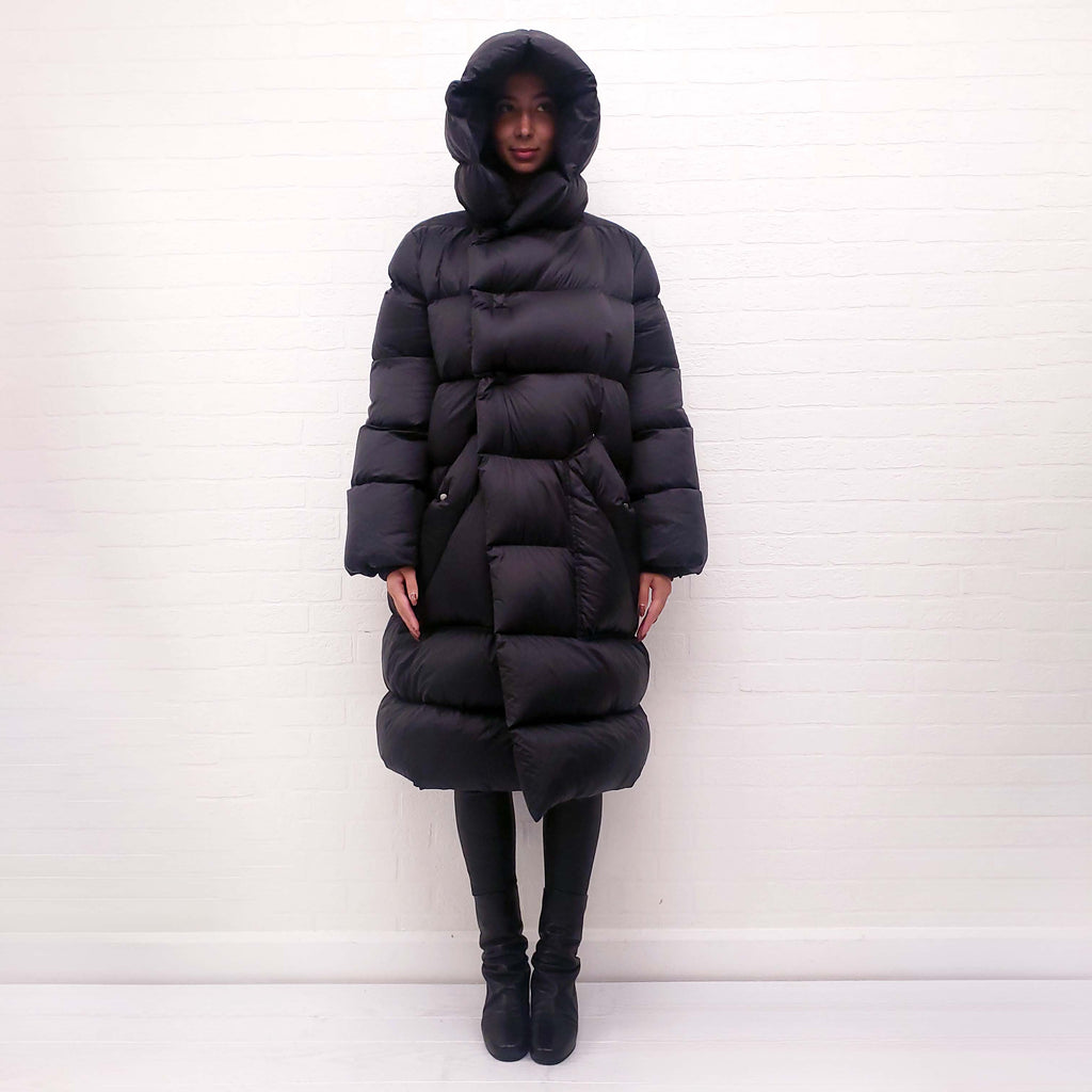 RICK OWENS DOWN PANELED BLACK COAT - SIZE 10