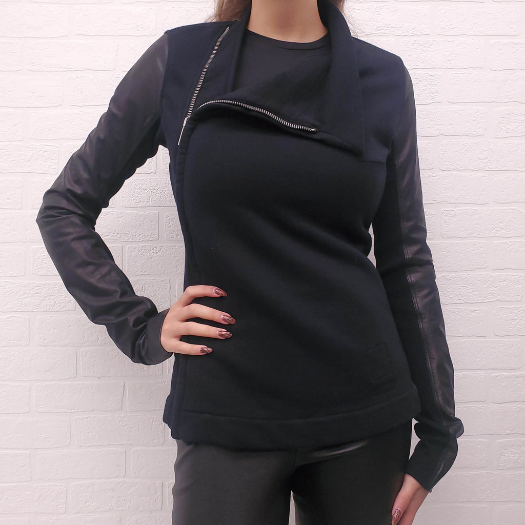 RICK OWENS DRKSHW SWEATSHIRT BLAZER WITH LEATHER SLEEVE - M