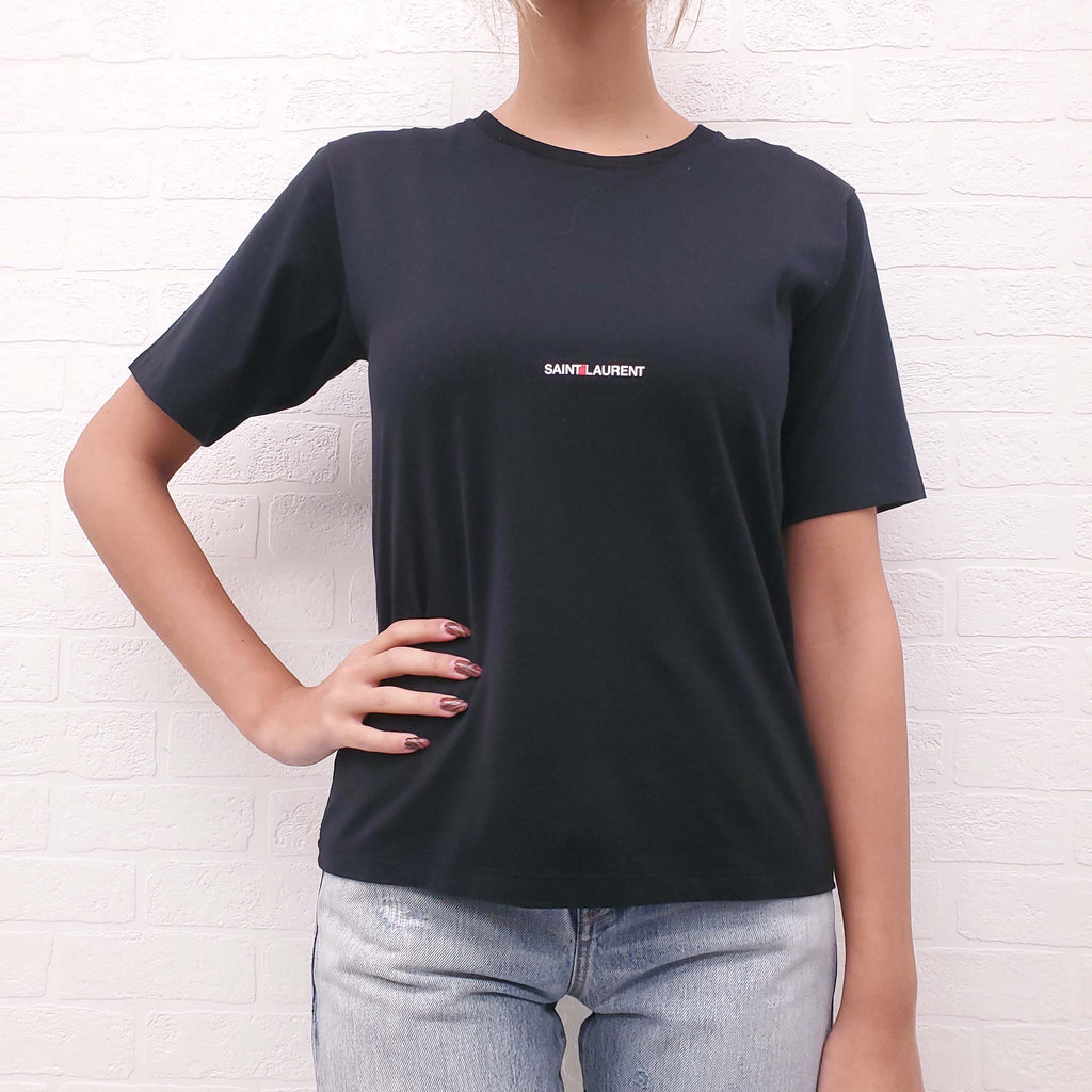 SAINT LAURENT BLACK LOGO T-SHIRT - SIZE XS