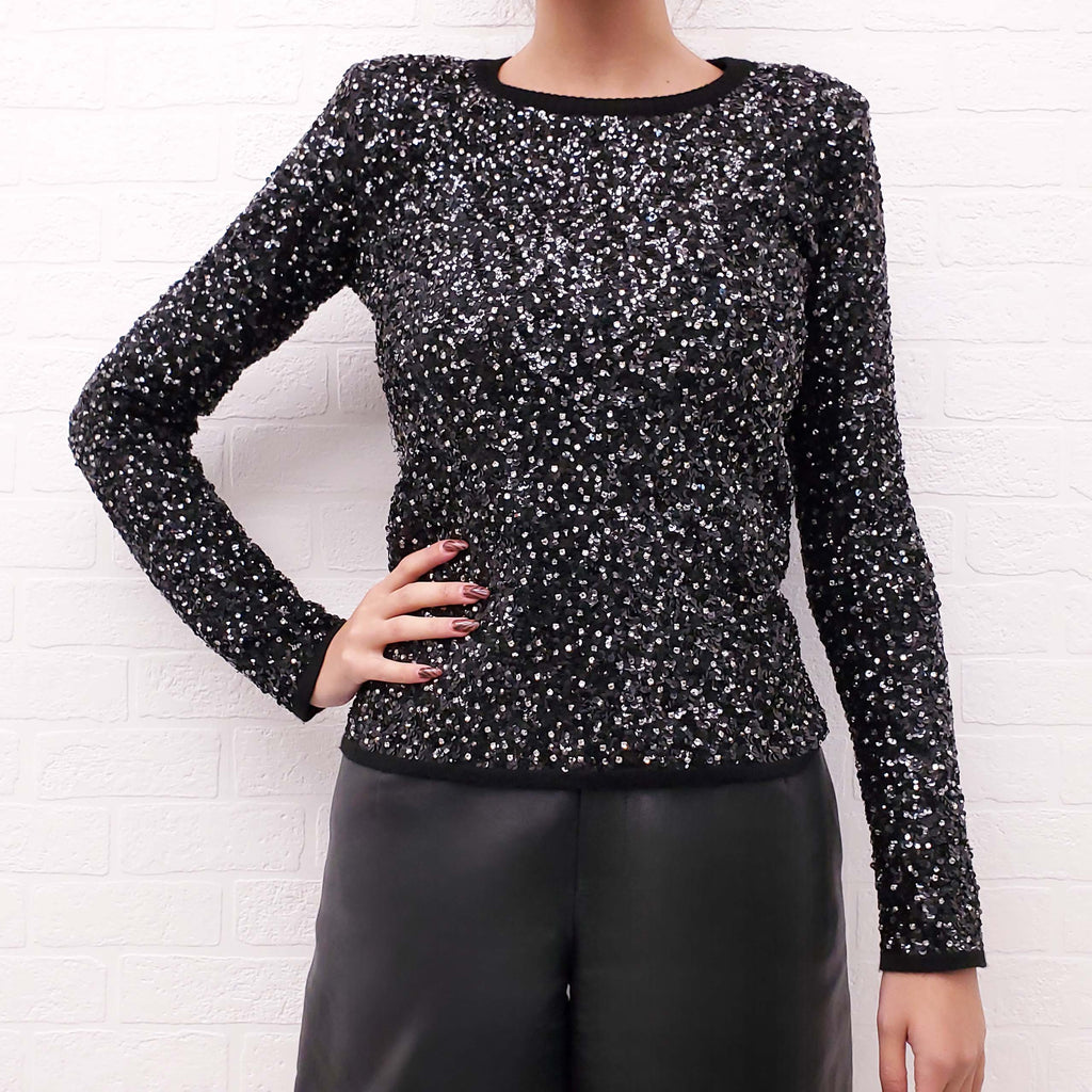 SAINT LAURENT BLACK SEQUIN AND CRYSTAL EMBELLISHED SWEATER - SIZE XS