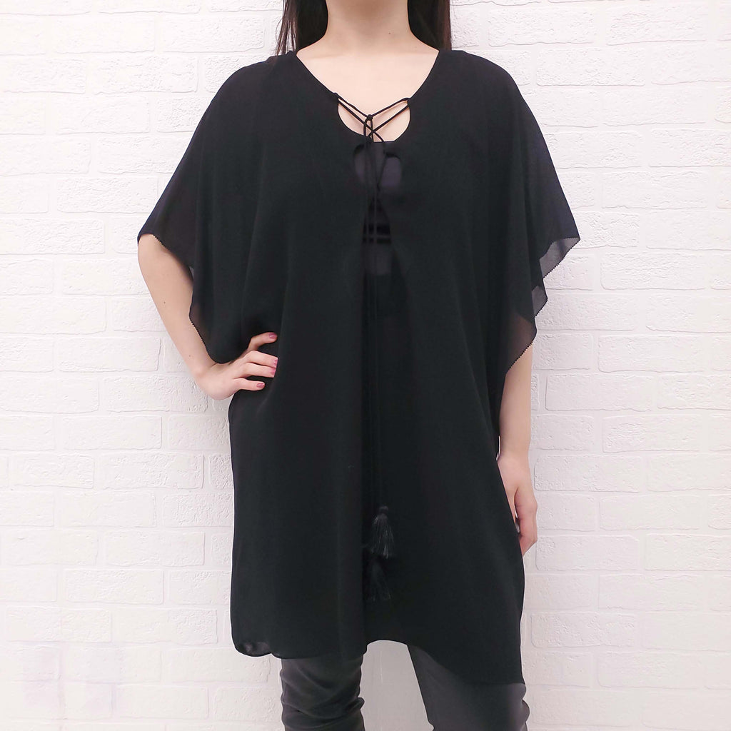 SAINT LAURENT BLACK SILK TUNIC LACE UP BLOUSE - SIZE 40