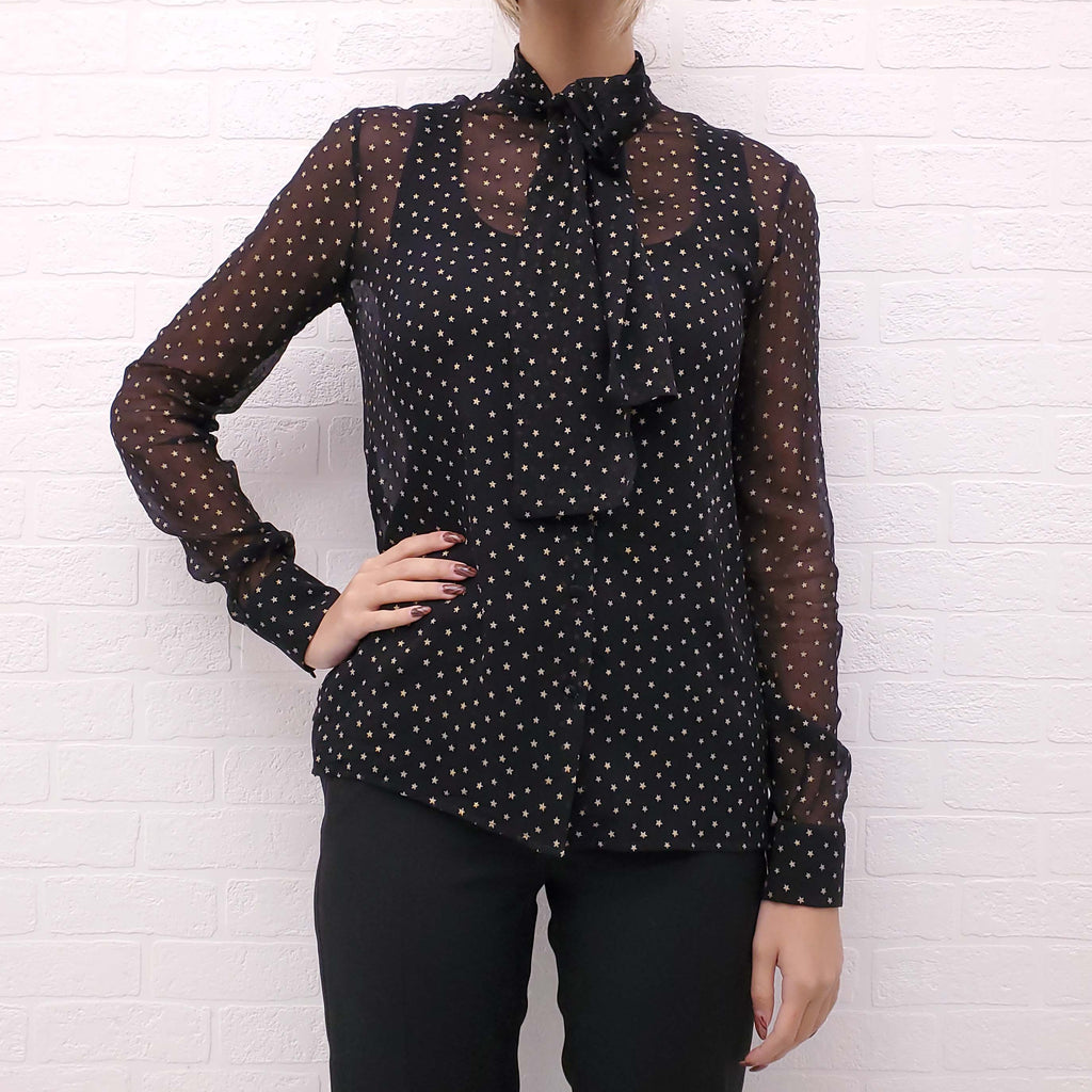 SAINT LAURENT BLACK STAR BLOUSE WITH TIE - SIZE 36