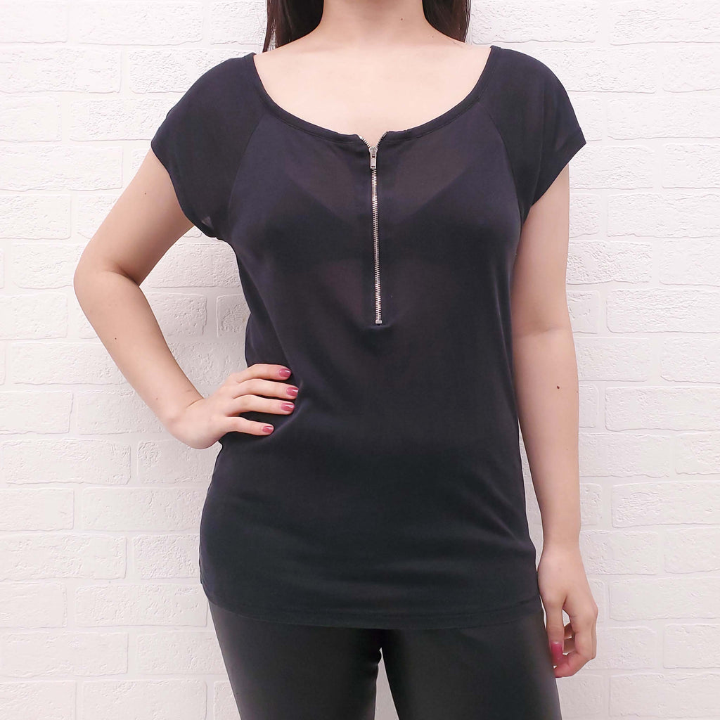 SAINT LAURENT BLACK T-SHIRT WITH ZIPPER - SIZE M