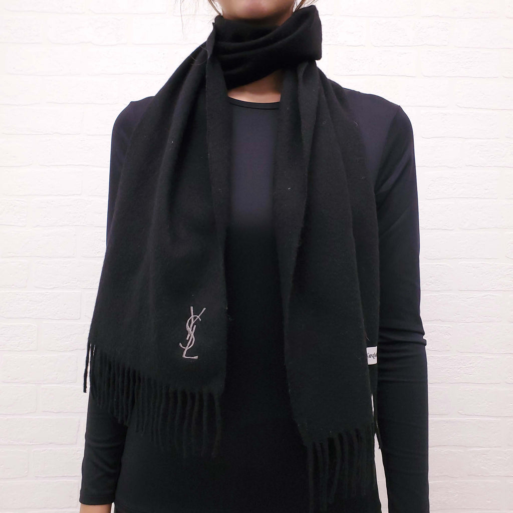 SAINT LAURENT BLACK LOGO SCARF
