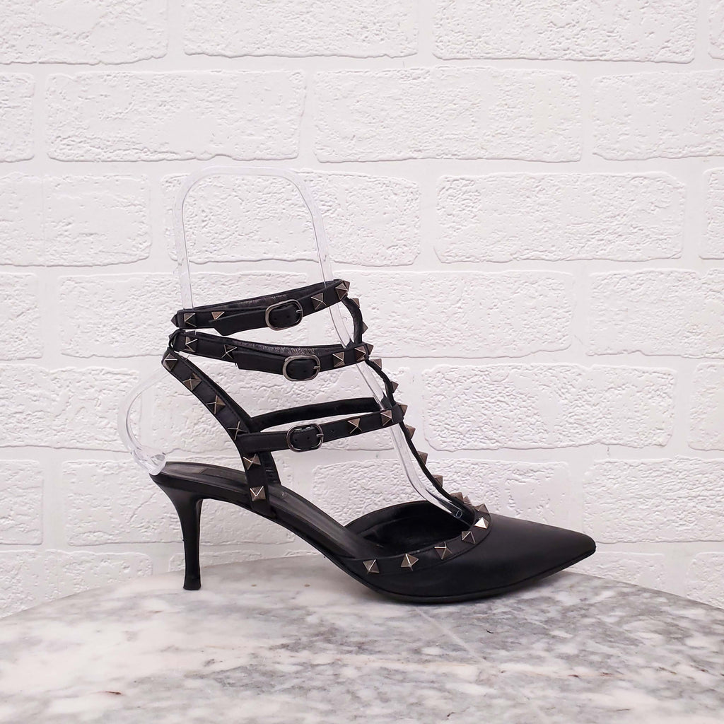 VALENTINO BLACK ROCKSTUD KITTEN HEELS - SIZE 41