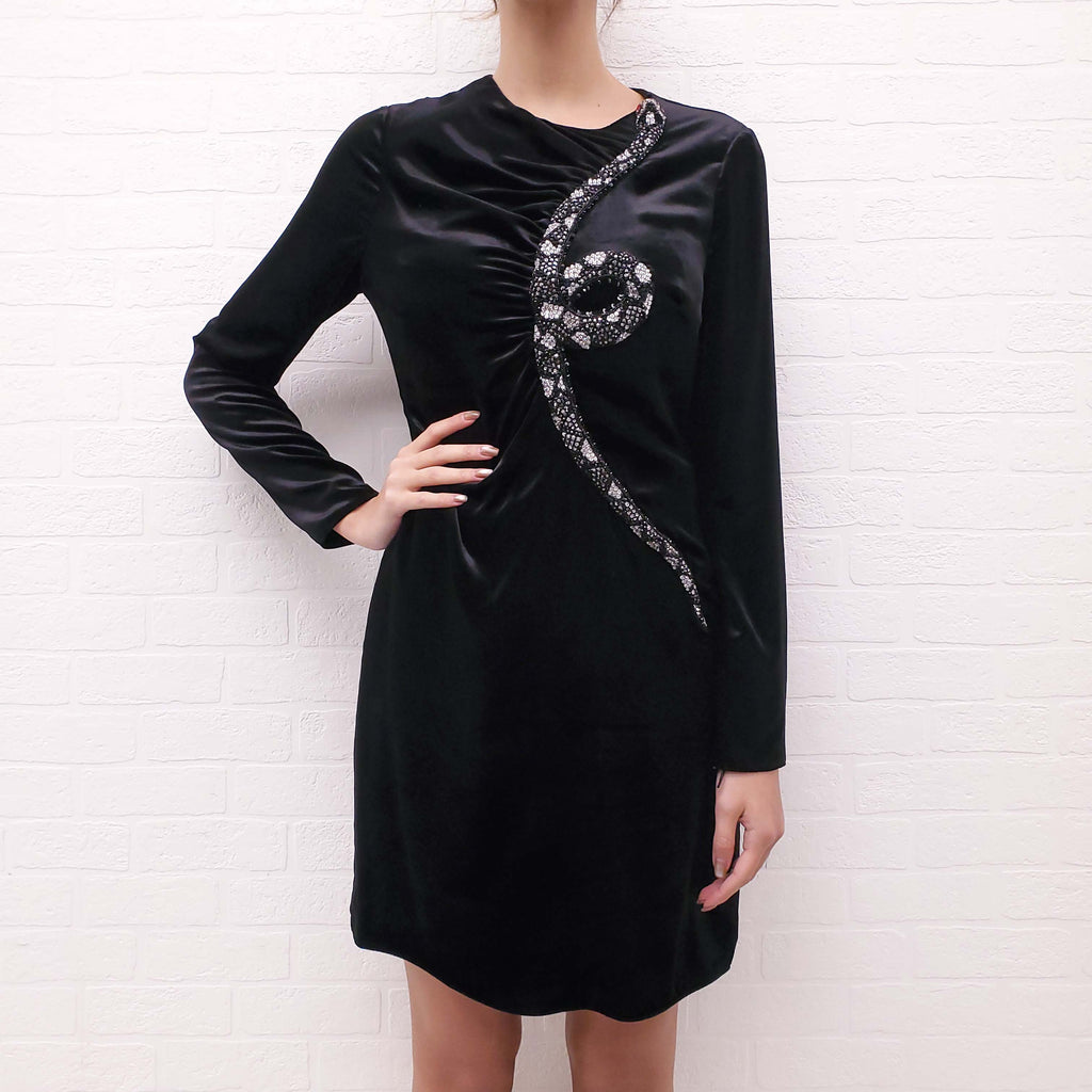 VALENTINO BLACK VELVET DRESS WITH CRYSTAL SNAKE DETAIL - SIZE 6