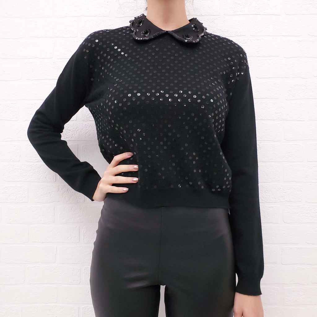 VALENTINO BLACK WOOL SWEATER WITH SEQUIN - SIZE S