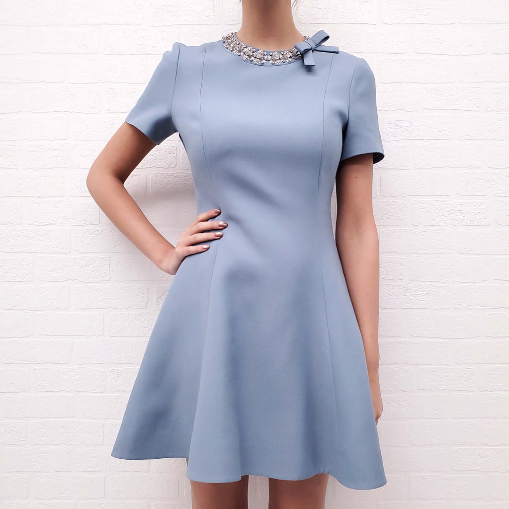 VALENTINO BLUE DRESS WITH RHINESTONES AND BOW - SIZE 40