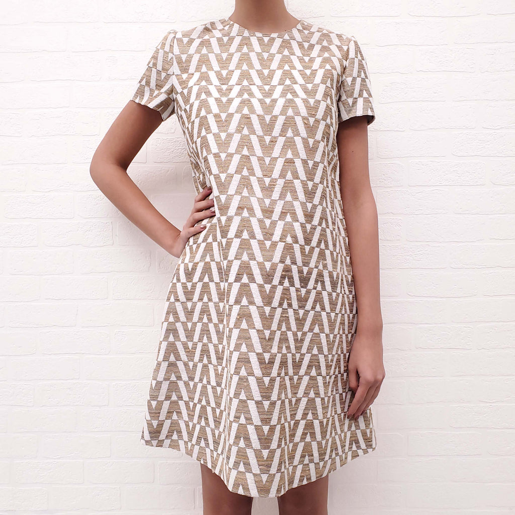 VALENTINO CREAM AND GOLD LOGO DRESS - SIZE 4