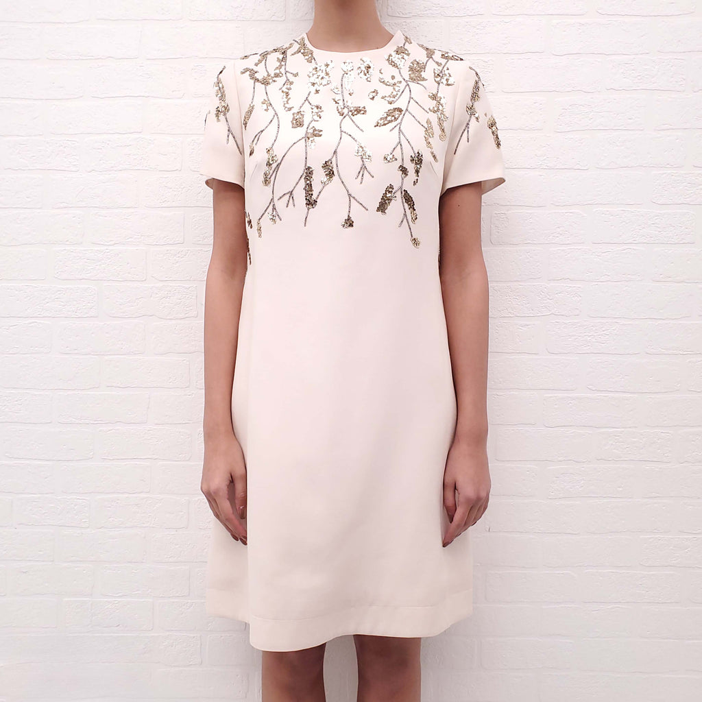 VALENTINO CREAM DRESS WITH GOLD BEADING - SIZE 10