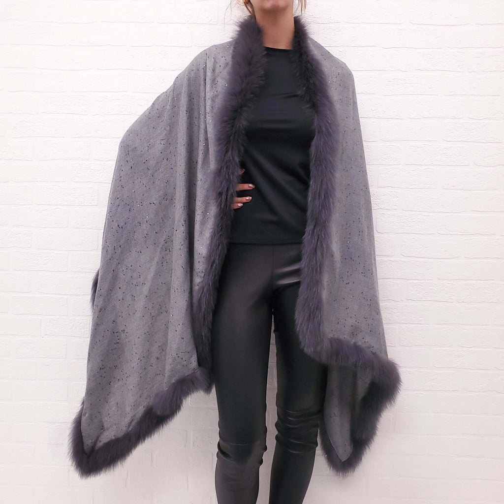 VALENTINO GREY SPARKLE SHAWL WITH FUR