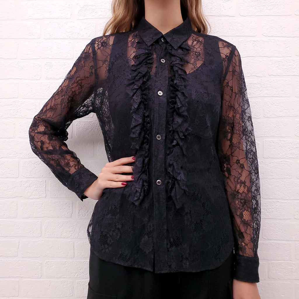 COMME DES GARÇONS BLACK LACE BLOUSE WITH RUFFLE DETAIL - SIZE L