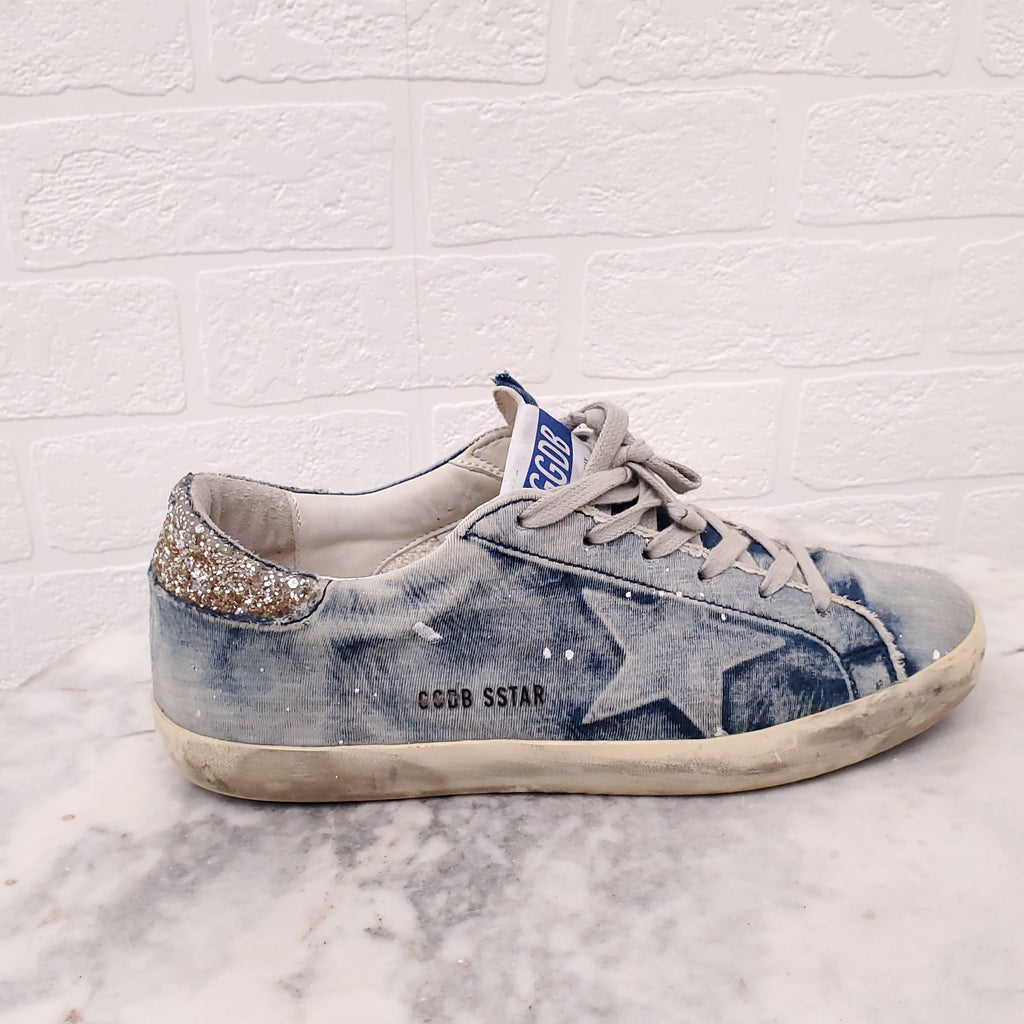 GOLDEN GOOSE DENIM SNEAKERS WITH SILVER SEQUIN DETAIL - SIZE 38