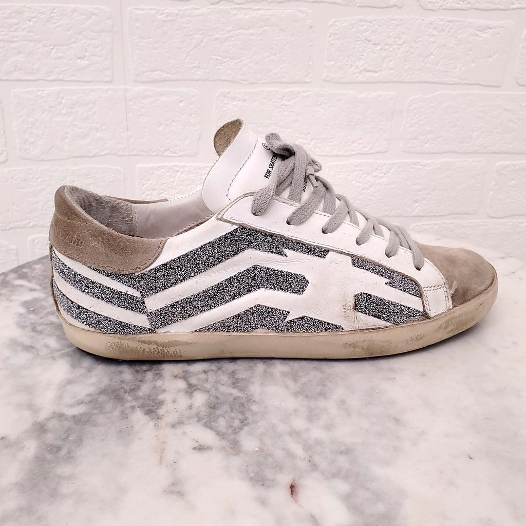 GOLDEN GOOSE SILVER SUPER STAR CLASSIC WITH LIST SNEAKERS - SIZE 38