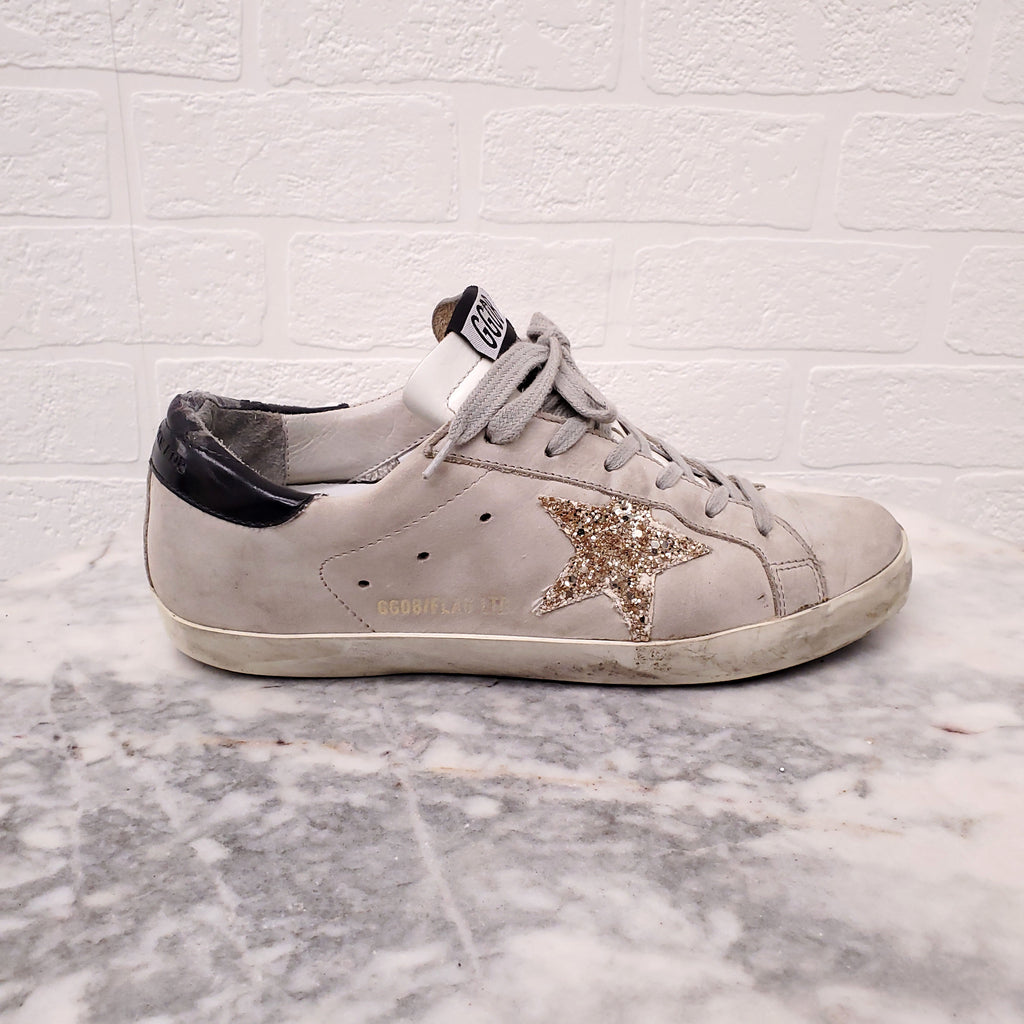 GOLDEN GOOSE SUEDE SUPERSTARS WITH GOLD SEQUINS - SIZE 38