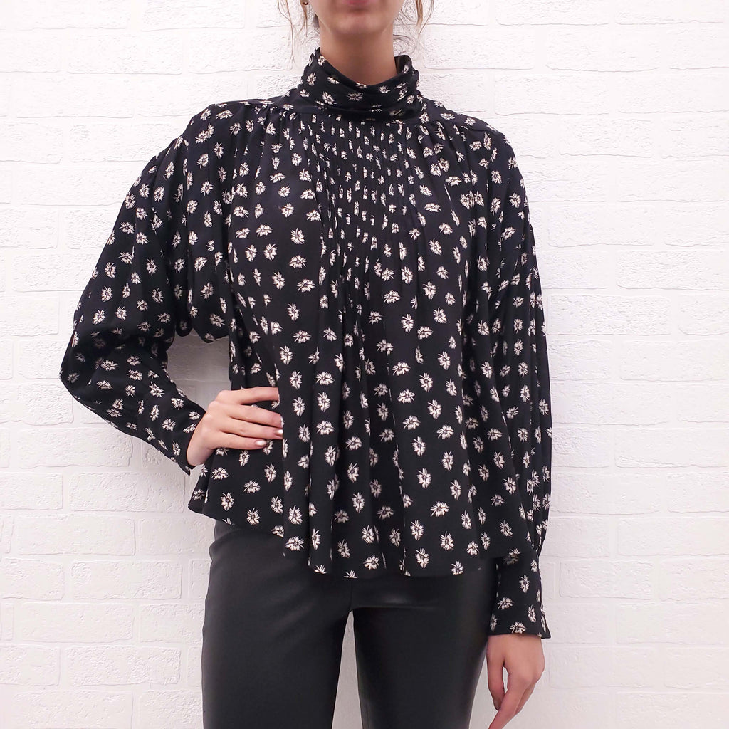 ISABEL MARANT BLACK FLORAL BLOUSE - SIZE 34