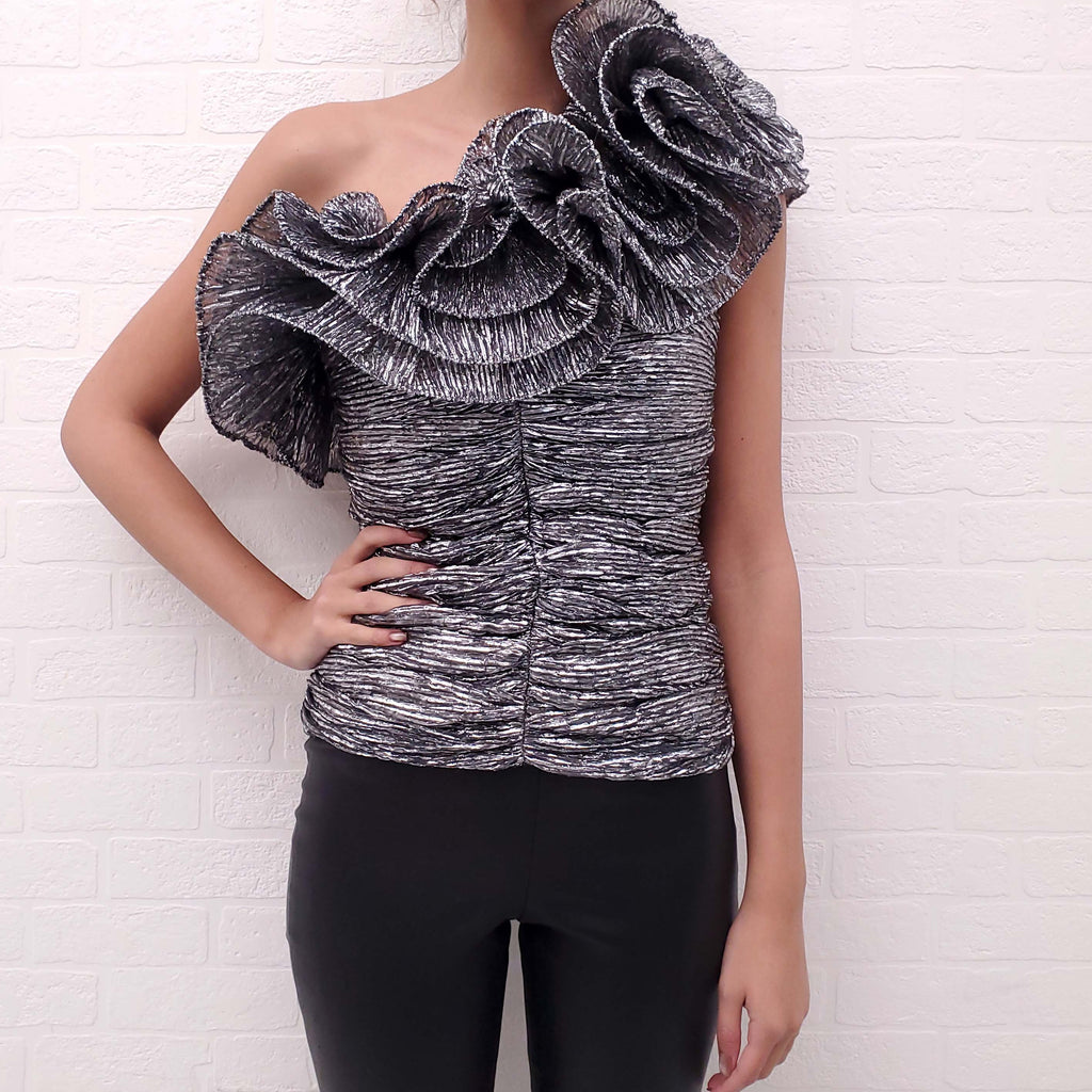 ISABEL MARANT 'TRUDIE' SILVER RUFFLE TOP - SIZE 36