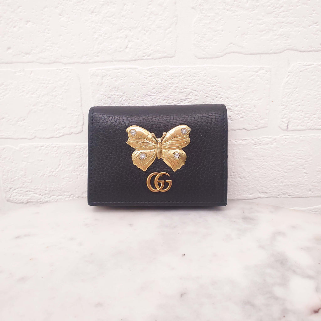 GUCCI BLACK LEATHER COMPACT WALLET WITH BUTTERFLY LOGO