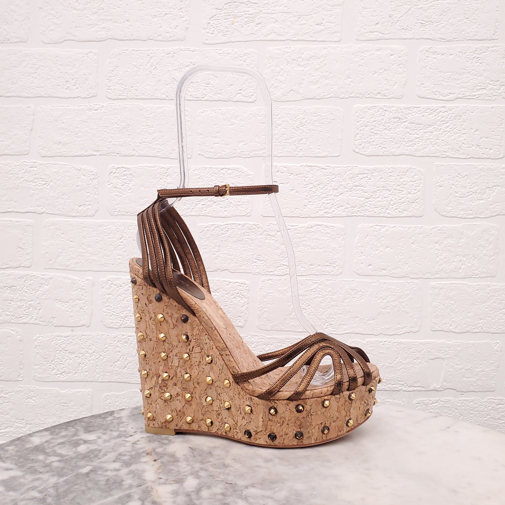 GUCCI BRONZE LEATHER WEDGES WITH ROCKSTUD DETAILS - SIZE 38