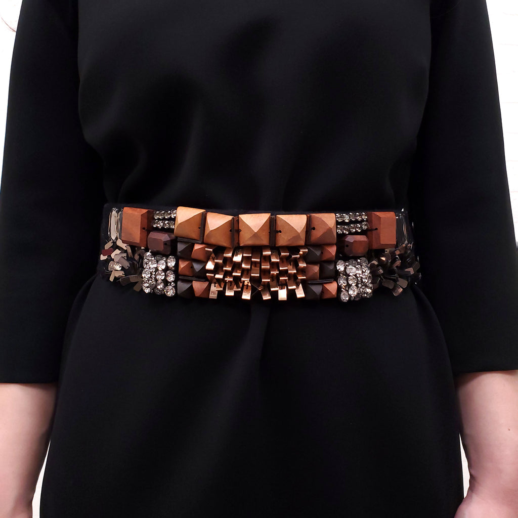LANVIN WAIST BELT WITH BROWN & GOLD DETAILS - SIZE L