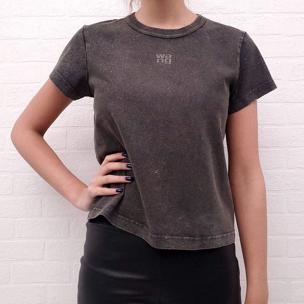 ALEXANDERWANG.T GOLD SPARKLE LOGO T-SHIRT - SIZE S
