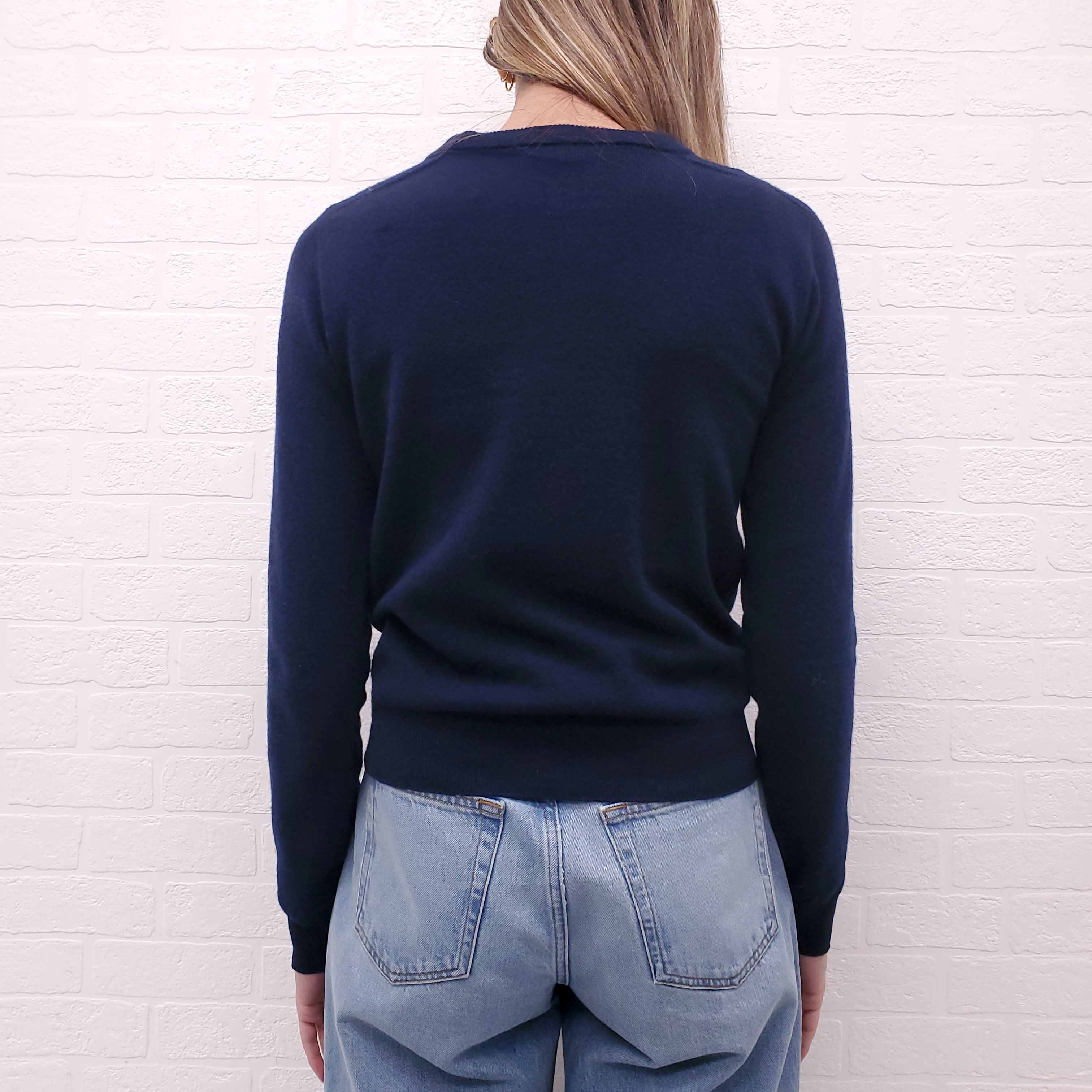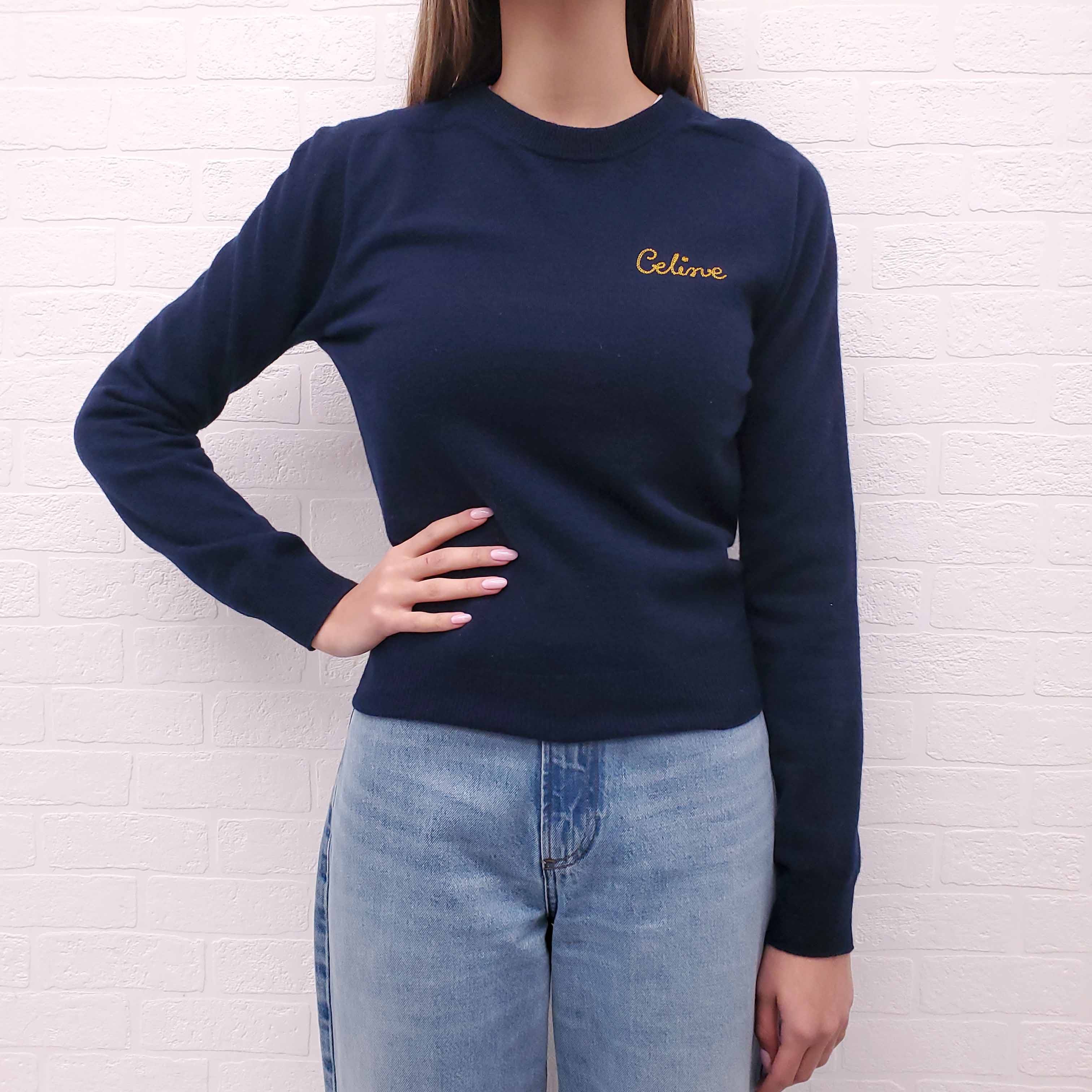 CELINE NAVY LOGO SWEATER - SIZE XS