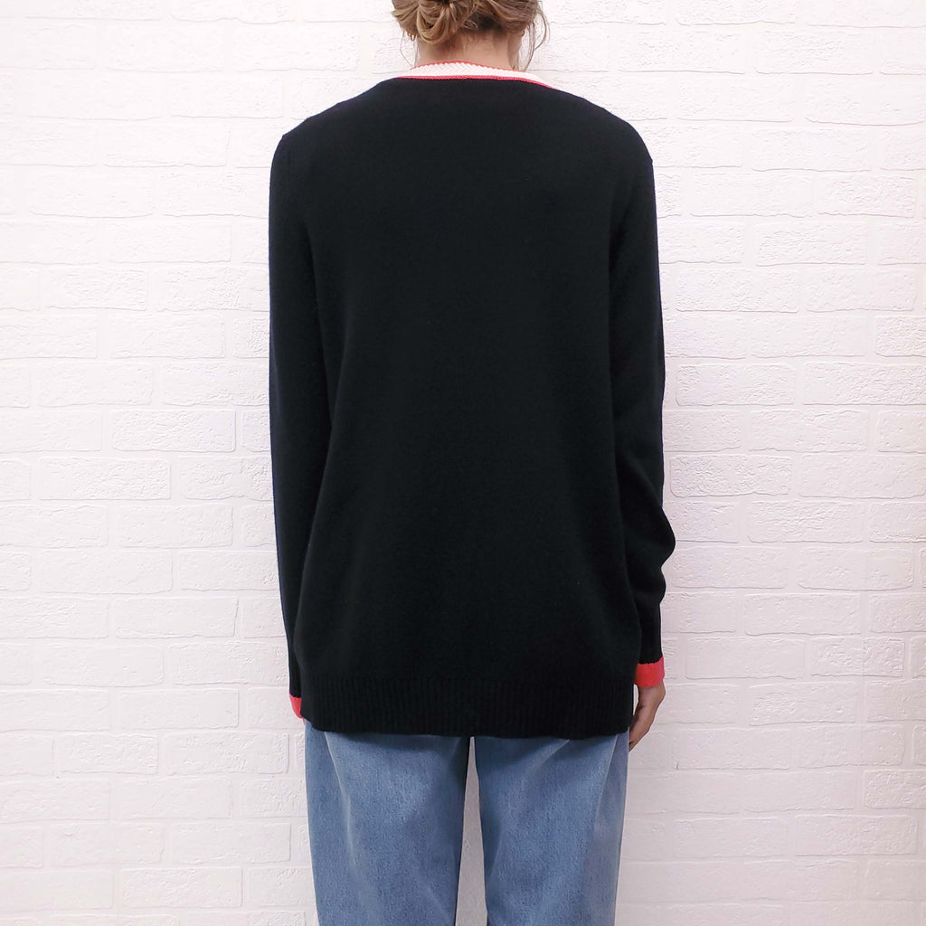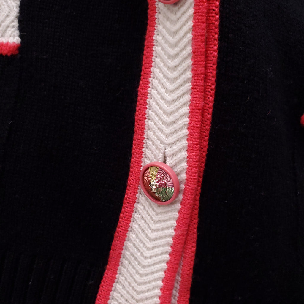 CHANEL BLACK, PINK AND CREAM 2013 CASHMERE CARDIGAN WITH RAINBOW LION BUTTONS - SIZE 42