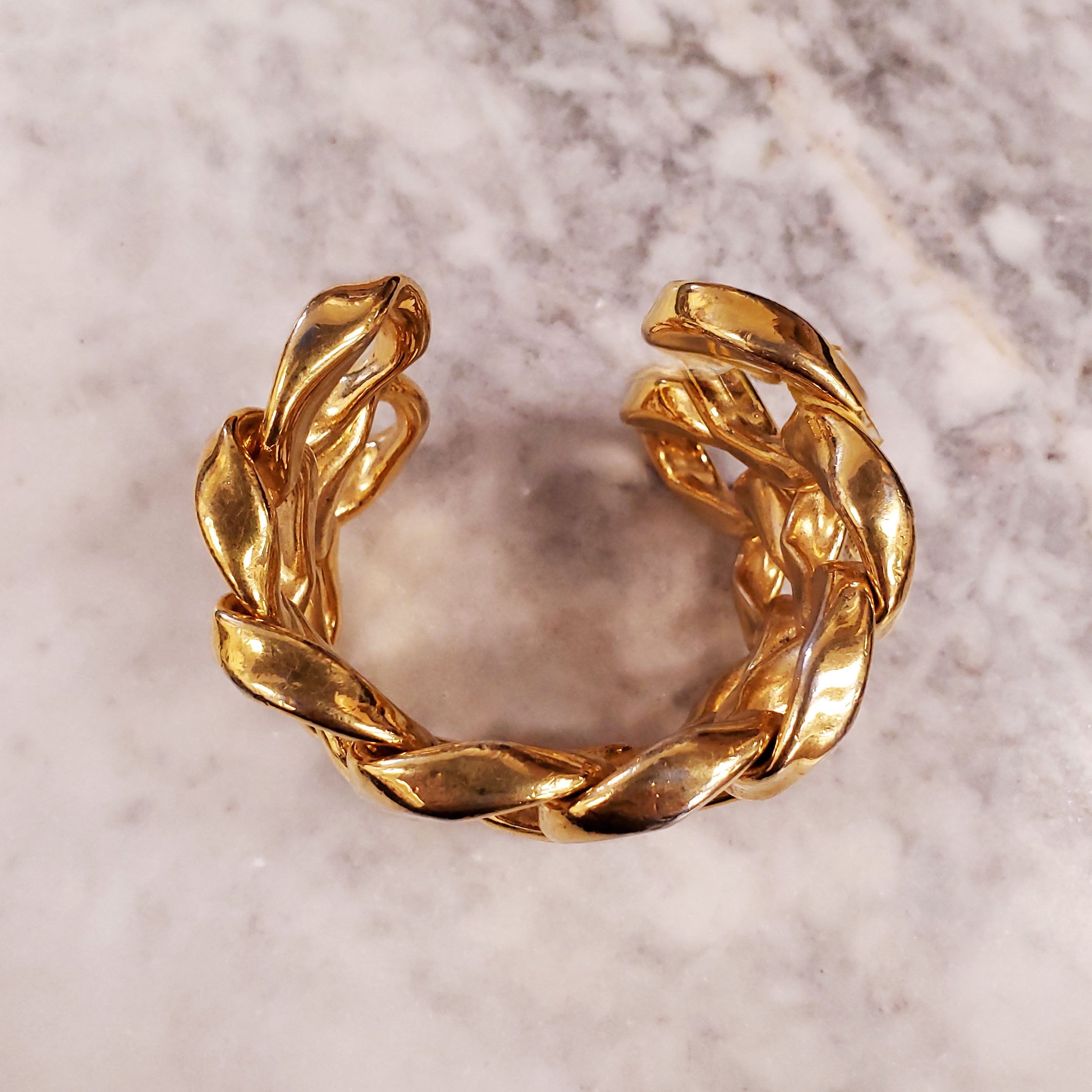 CHANEL 1986 GOLD-TONED CUFF BRACELET RESEMBLING A CHAIN