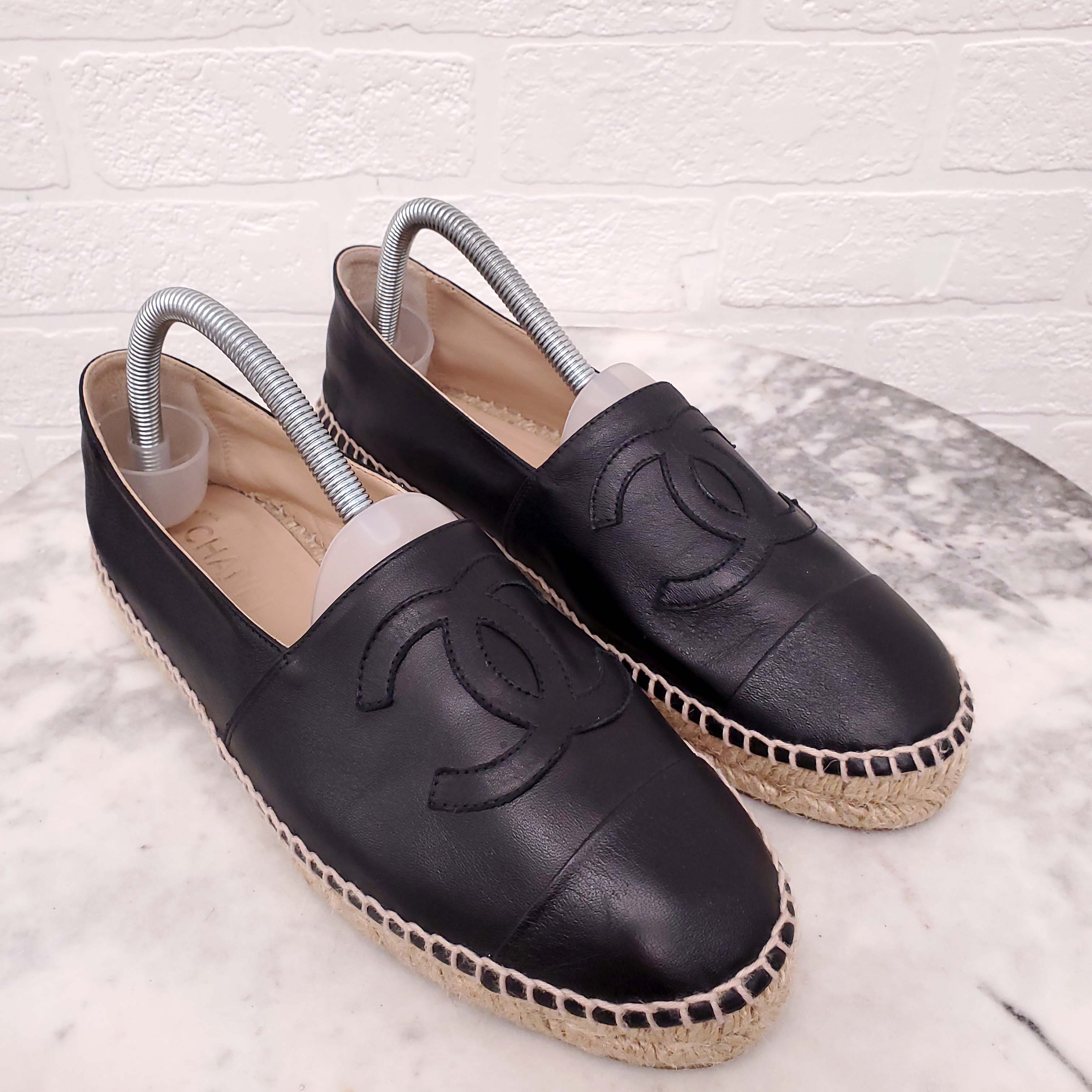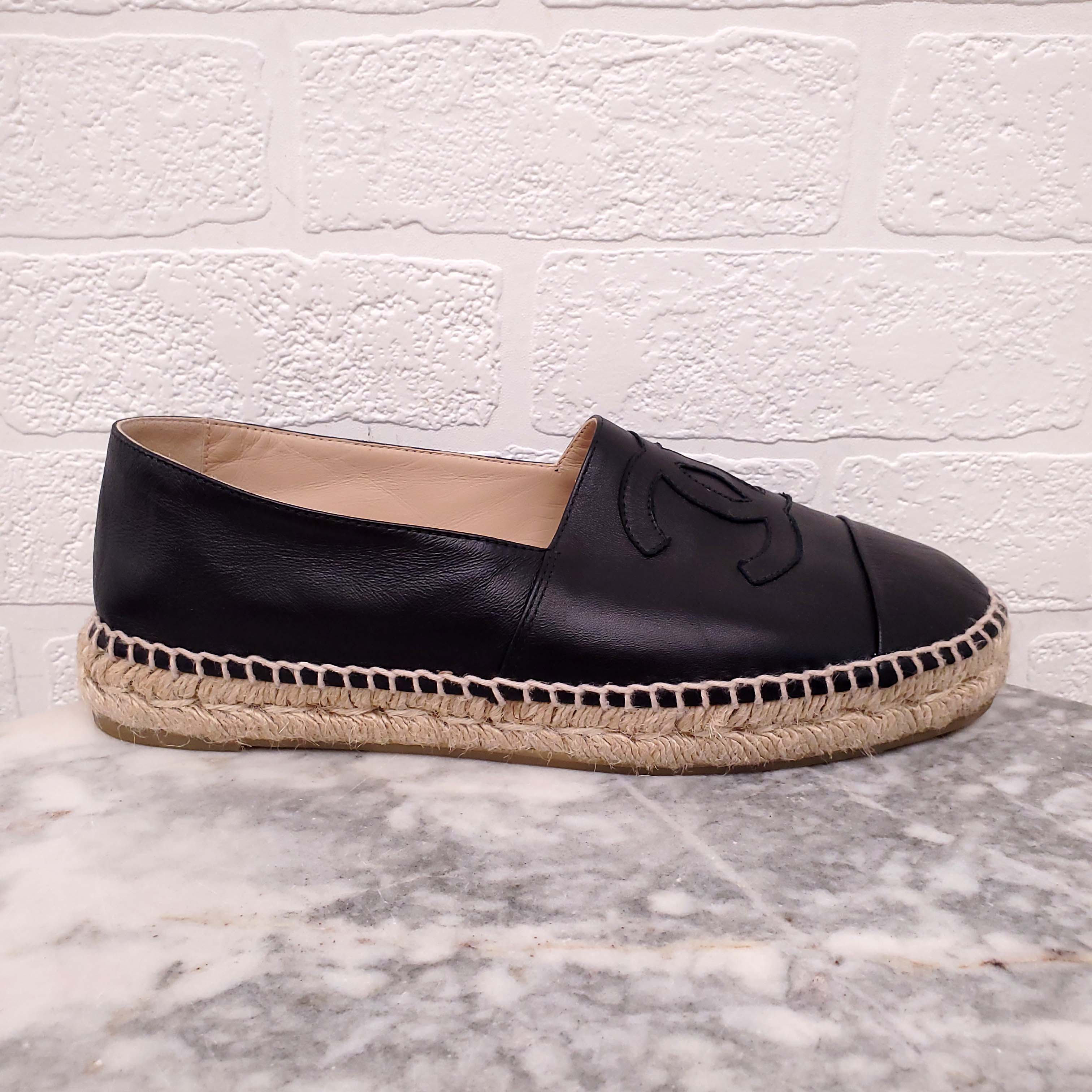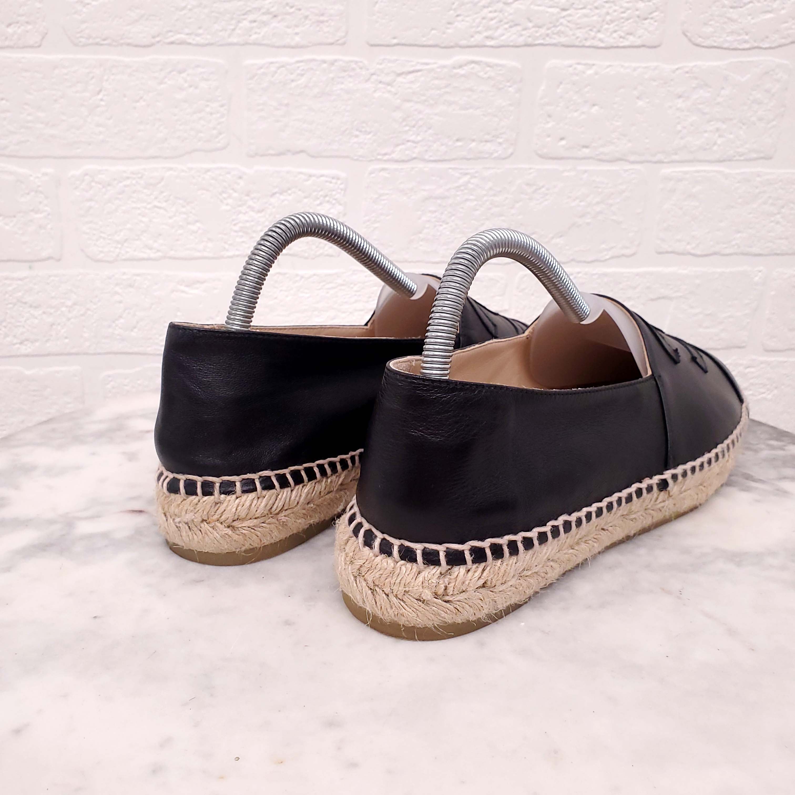 CHANEL BLACK LEATHER ESPADRILLES - SIZE 40