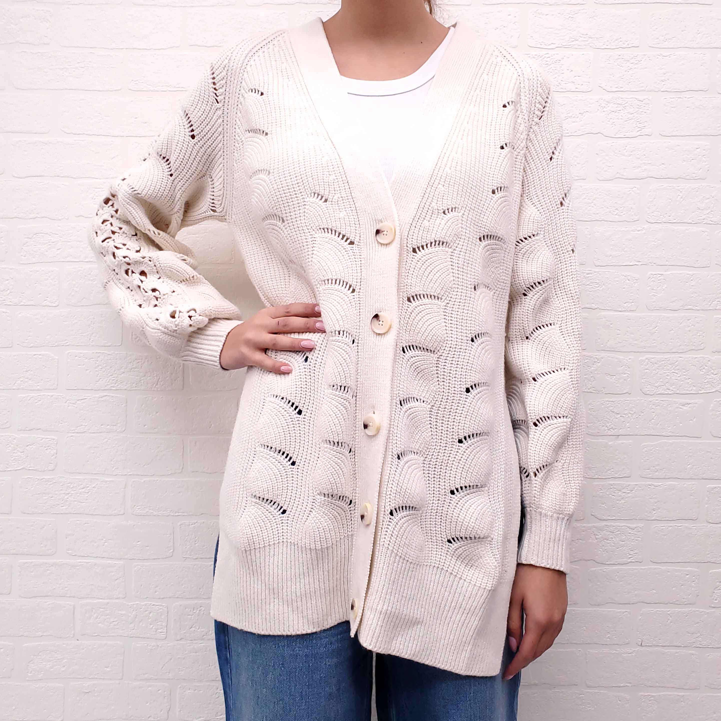 SEE BY CHLOE CROCHET KNIT LONG CARDIGAN - SIZE S
