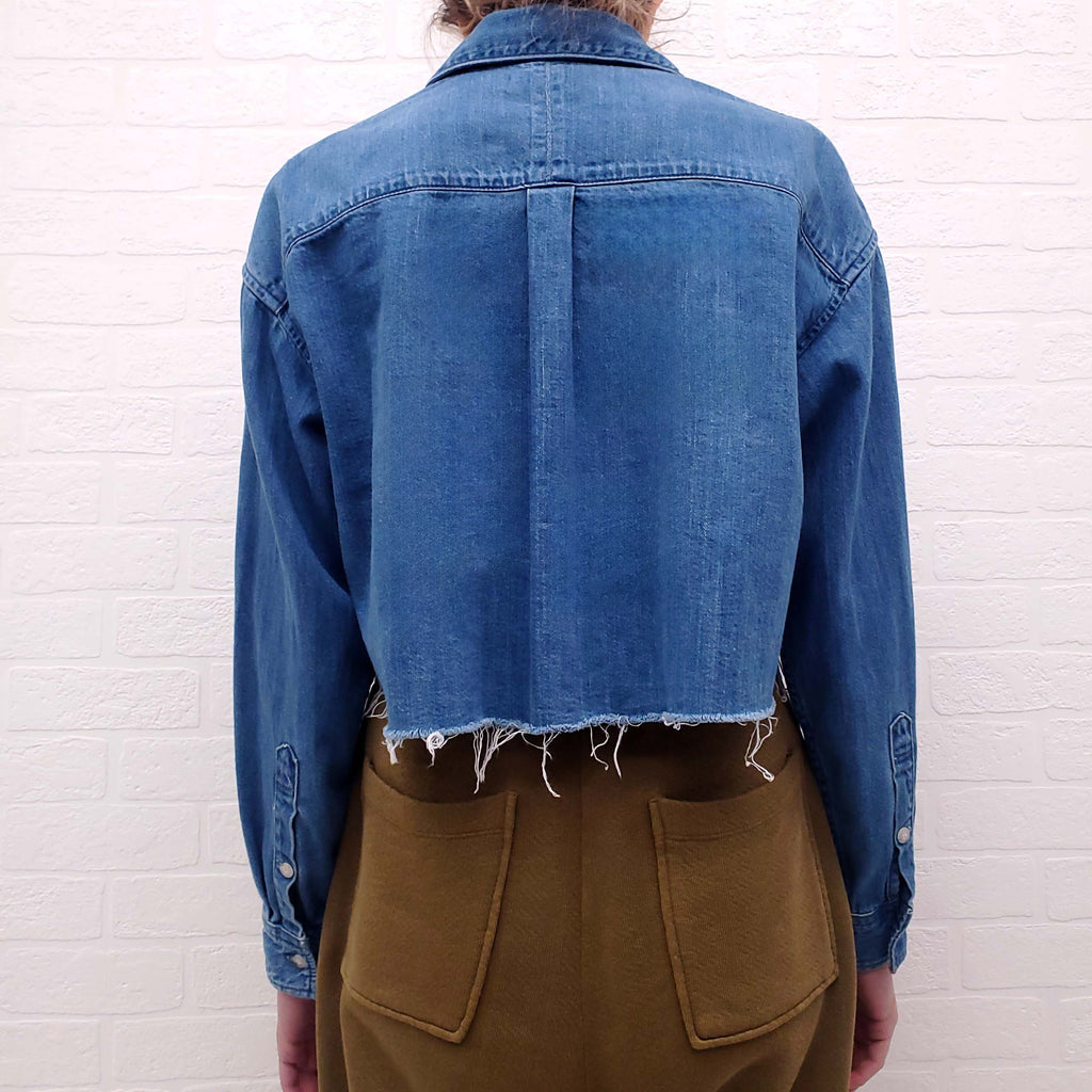 MOUSSY CROPPED DENIM SHIRT - SIZE XS