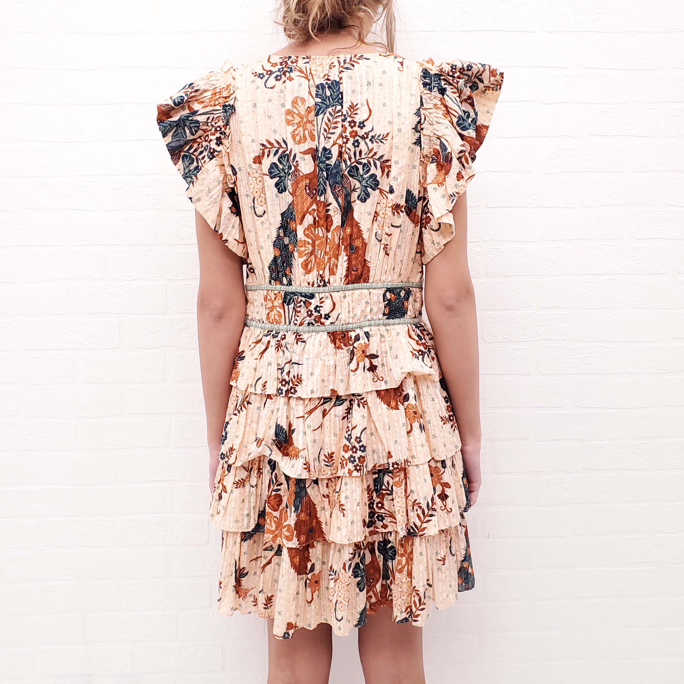 ULLA JOHNSON TURQUOISE AND ORANGE PATTERNED DRESS - SIZE 12