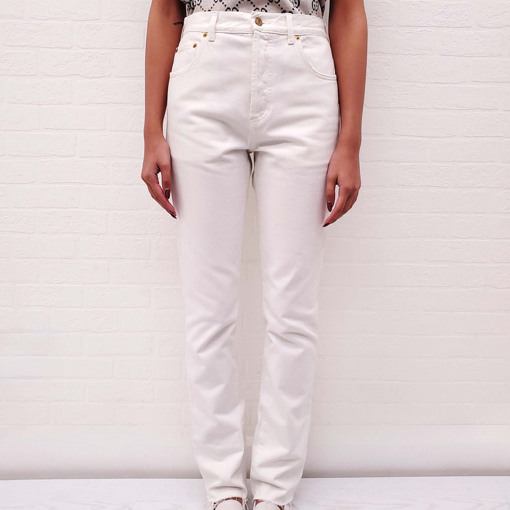 GUCCI WHITE UNISEX JEANS WITH LOGO ON BACK - SIZE 30