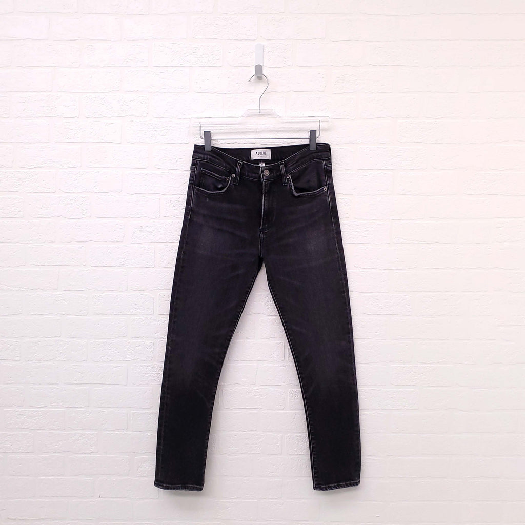 AGOLDE DARK GREY DISTRESSED STRETCH JEANS - SIZE 28