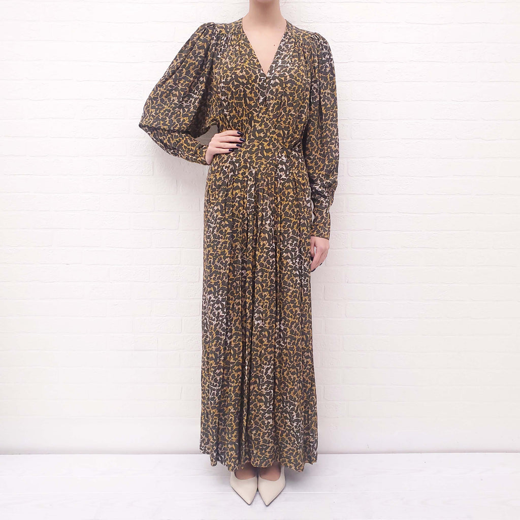 ISABEL MARANT ÉTOILE LEOPARD EFFECT LONG SLEEVE PLEATED DRESS - SIZE 36