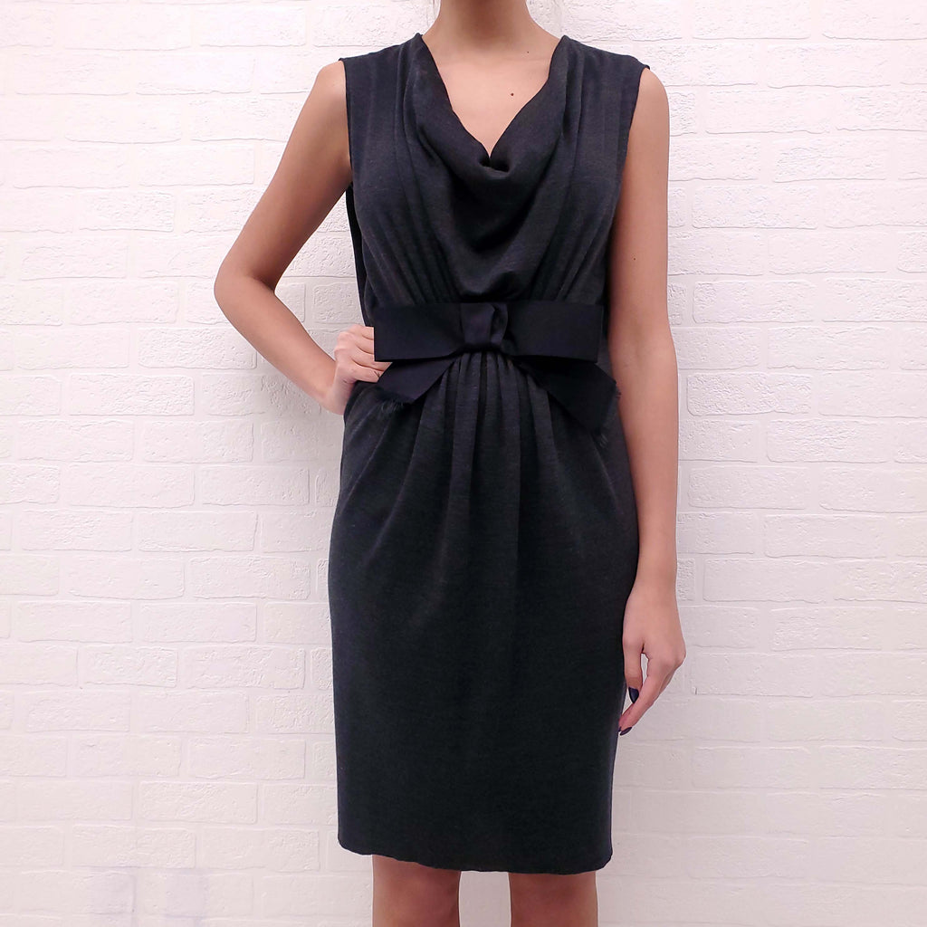 LANVIN GREY WOOL RUCHED DRESS WITH BOW DETAIL - SIZE 38