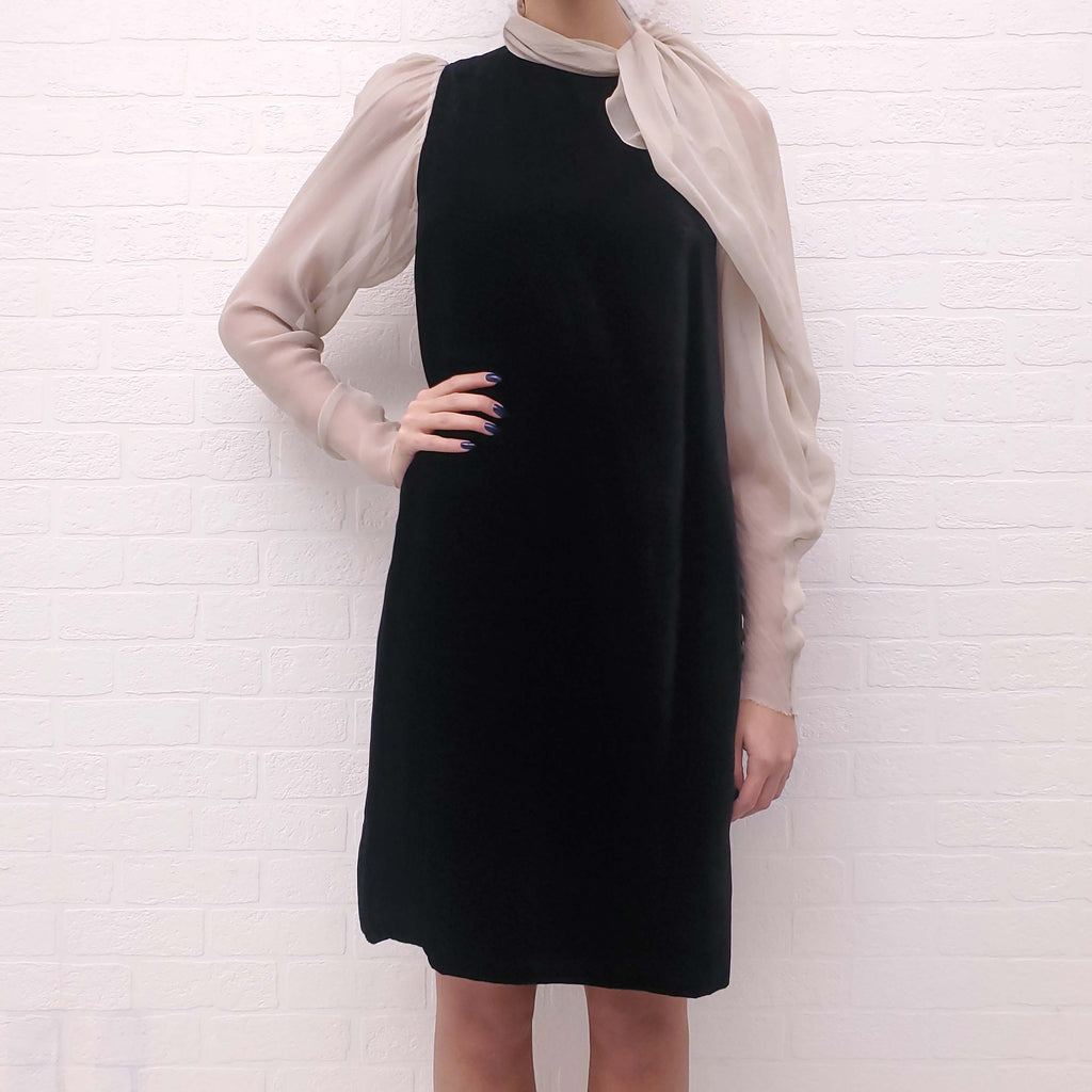 LANVIN VELVET AND CHIFFON MINI DRESS - SIZE 38