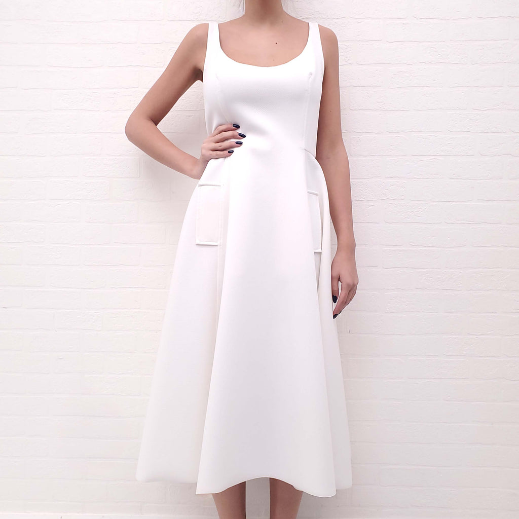 LANVIN WHITE LONG ALINE DRESS - SIZE 40
